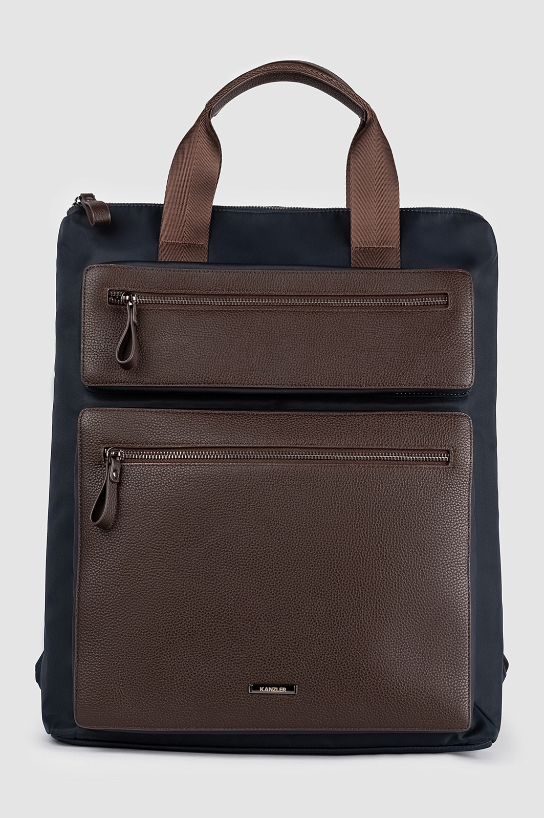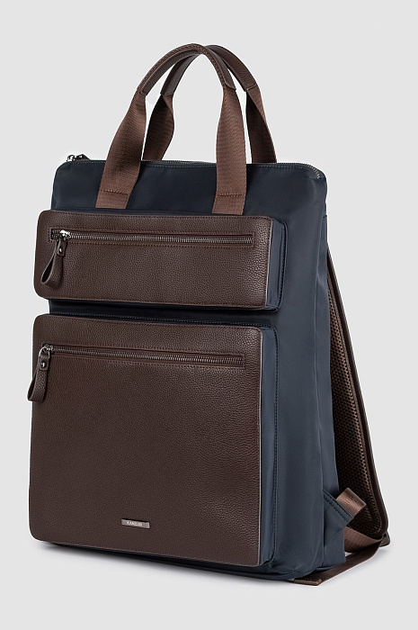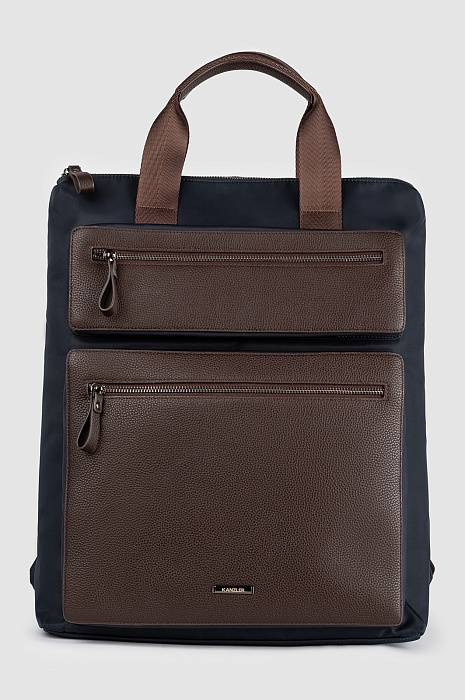 Роскошный рюкзак KANZLER в тёмно-синем исполнении из натуральной кожи и текстиля — сдержанный и выразительный аксессуар для жителя мегаполиса. Синяя текстильная основа из прочного лёгкого полиэстера контрастирует с отделкой из натуральной зернистой кожи тёплого коричневого цвета. Объёмные внешние карманы с надёжными молниями добавляют образу городской шик. Внутреннее пространство имеет отделения для ноутбука и личных вещей. Ручки и широкие лямки гарантируют комфорт при ношении и равномерное распределение нагрузки — важное преимущество для свободного передвижения по городским маршрутам.
