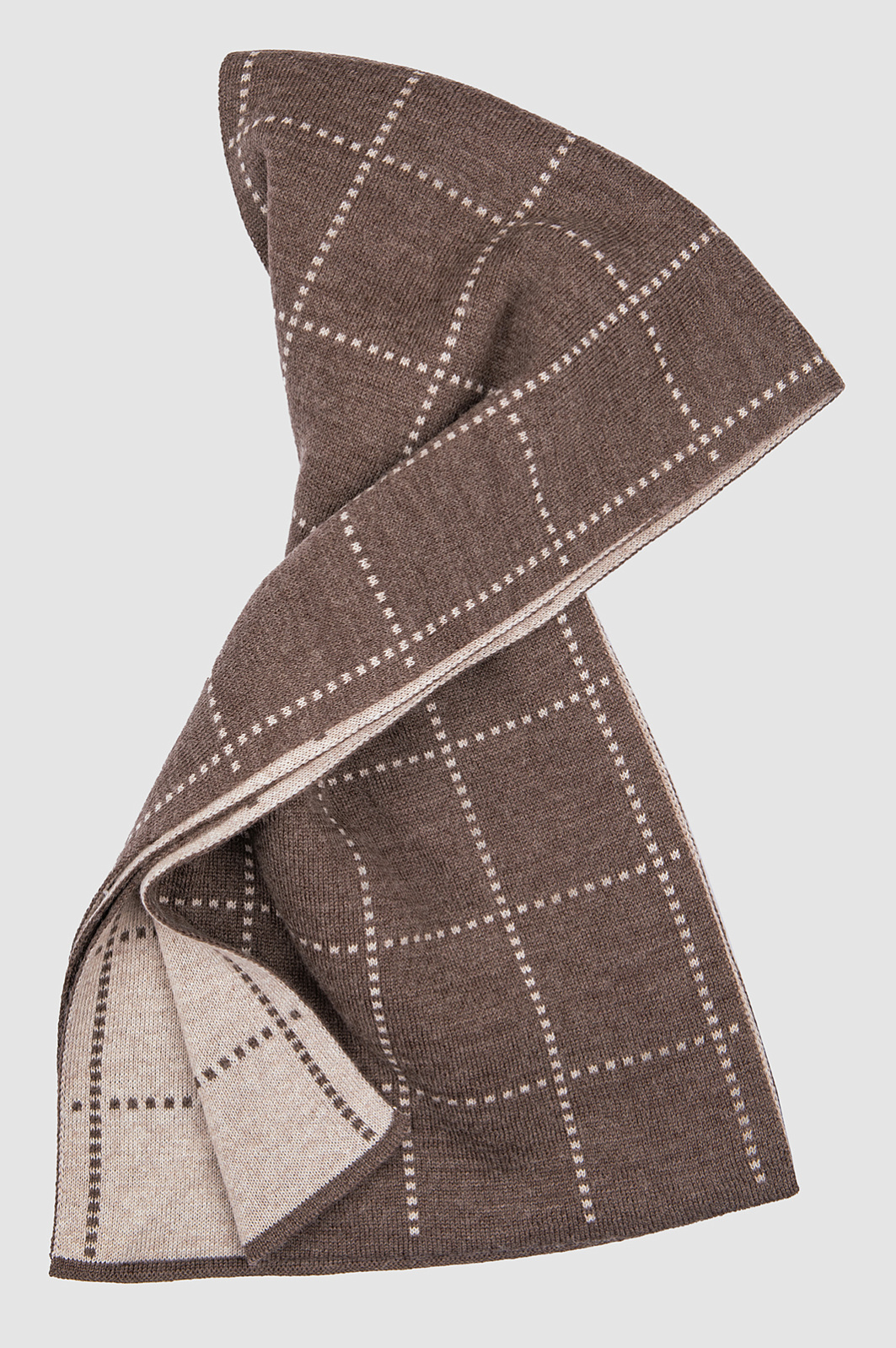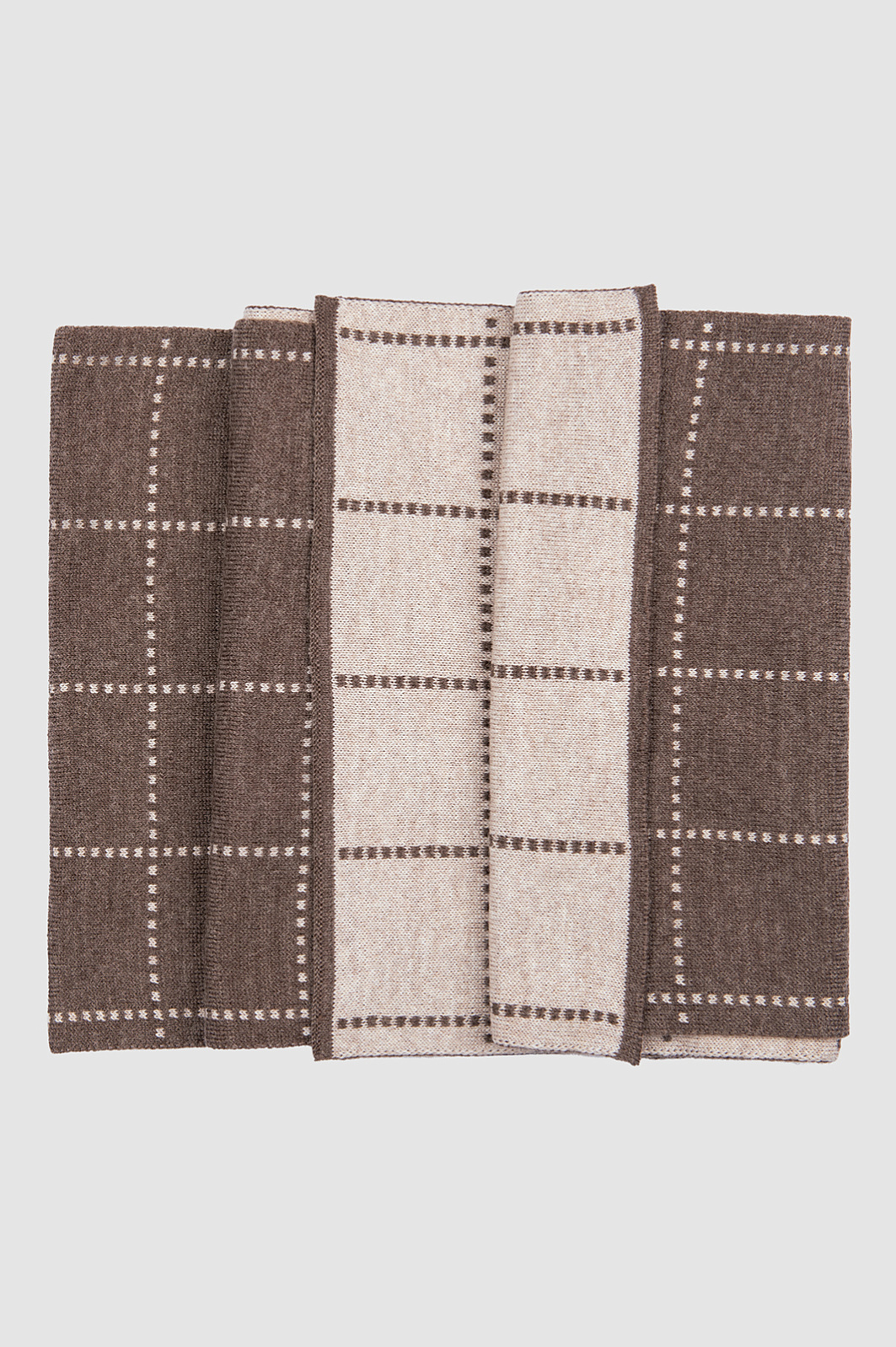 Шарф из шерсти в клетку коричневого цвета, цвет коричневый, цена 1 990 руб., код 268416 - купить в Уфе в интернет-магазине KANZLER
