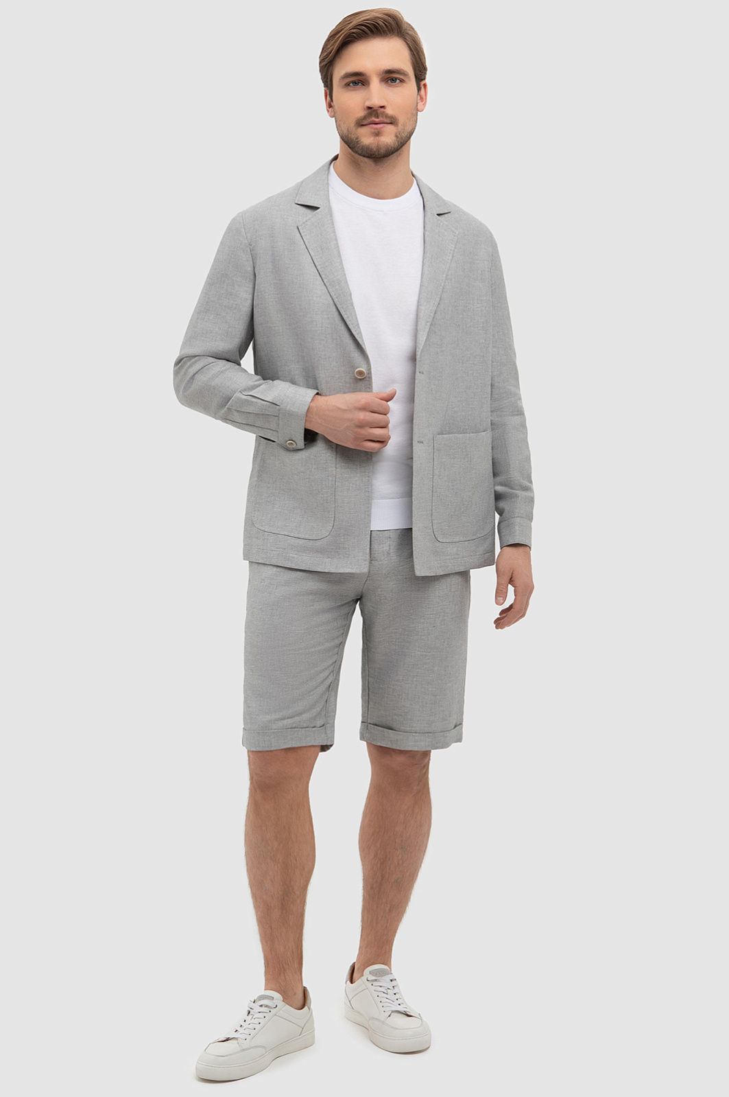 Элегантные светло-серые бермуды KANZLER изо льна и хлопка — идеальная вещь для теплых дней. Сочетая модель с футболкой и свободной рубашкой, легко создать непринужденный изысканный образ в стилях спорт и кежуал. Крой — классический, с небольшими защипами и аккуратными манжетами-отворотами. Застежка — потайная, с пуговицами. Роскошная натуральная ткань обеспечивает максимальный комфорт. Волокна льна дарят ощущение прохлады в самый знойный день. Воздушная структура хлопка поддерживает приятную для тела температуру. Подкладка из гладкой прочной смесовой ткани с добавлением хлопка облегчает надевание. Параметры модели: рост 187, 100-81-97 Размер на модели: 50