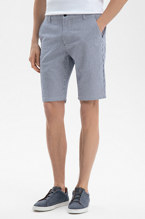 Бермуды из хлопка и льна в полоску, цвет синий, цена 8 990 руб., код 269097 - купить в Уфе в интернет-магазине KANZLER