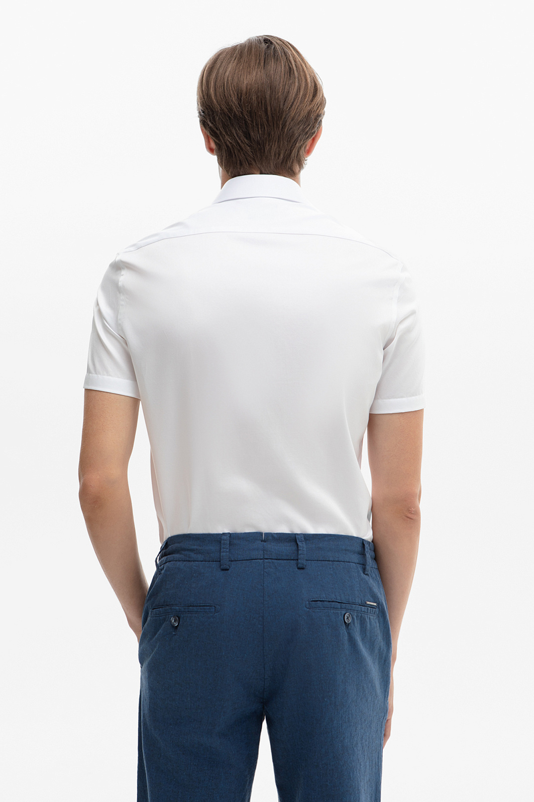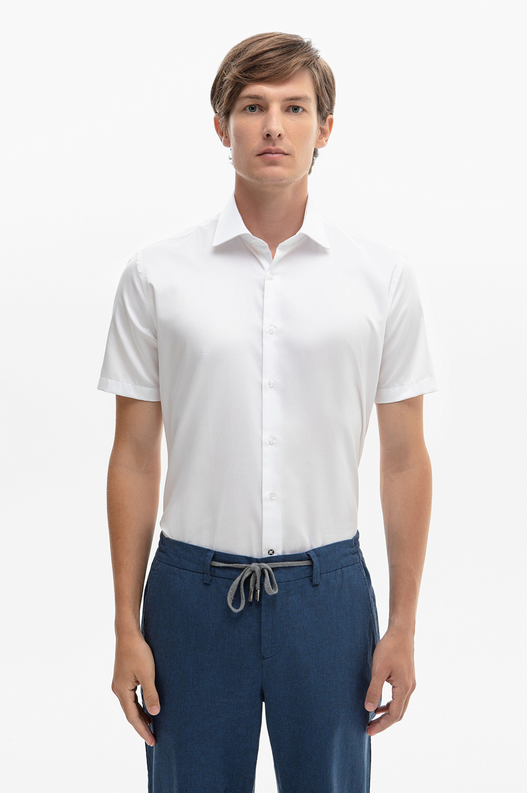 Белая сорочка с коротким рукавом из хлопка KANZLER — идеальный выбор для офиса. Освежающий белый сочетается с любыми оттенками одежде и делает образ легким и непринужденным. Приталенный крой подчеркивает мужественность фигуры. Короткий рукав — спасительный вариант для жарких дней. В прохладное время сорочку можно дополнить кардиганом или пиджаком. Натуральная ткань из 100-процентного хлопка обеспечивает комфорт в течение дня. Устойчивый к сминанию материал практически не нуждается в глажке после стирки. Параметры модели: рост 191, 97-77-99 Размер на модели: 40