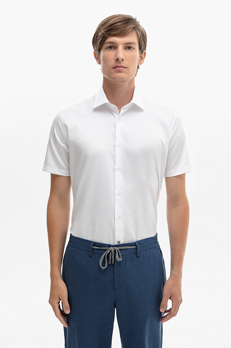 Белая хлопковая сорочка с коротким рукавом, легкая в уходе, цвет белый, цена 6 990 руб., код 267497 - купить в Уфе в интернет-магазине KANZLER