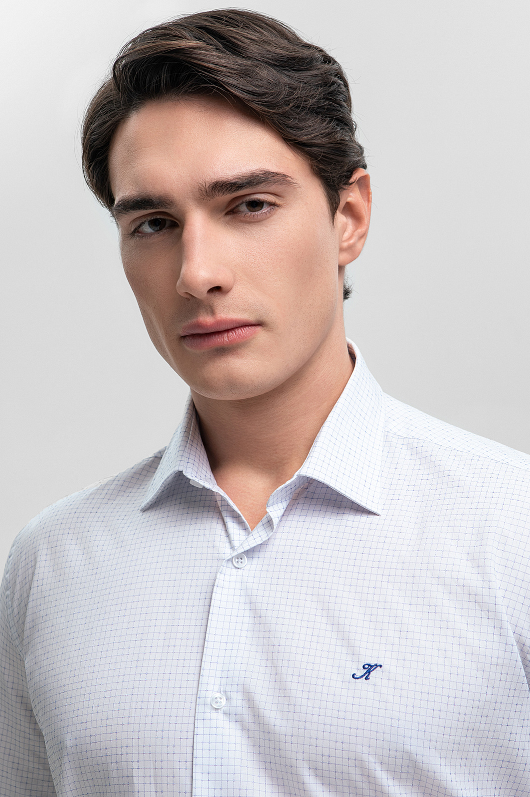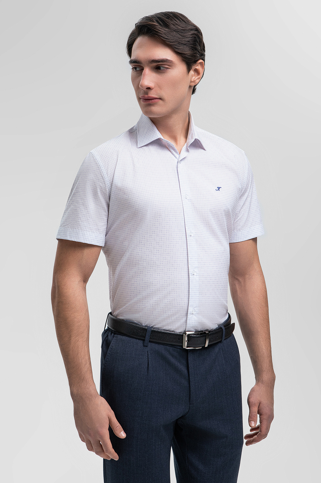 Для создания белой сорочки с коротким рукавом дизайнеры KANZLER выбрали премиальную ткань от итальянской мануфактуры Canclini, производителя с вековой историей. Прочный и долговечный 100% хлопок гарантирует непревзойденную мягкость и воздухопроницаемость. Приталенный крой подчеркивает достоинства фигуры и создает аккуратный собранный силуэт. Деликатный узор в клетку придает сорочке актуальный и стильный вид, делая ее отличным выбором для множества случаев. Принадлежность бренду обозначили изящной буквой «К», вышитой на груди. Параметры модели: рост 190, 103-83-99 Размер на модели: M