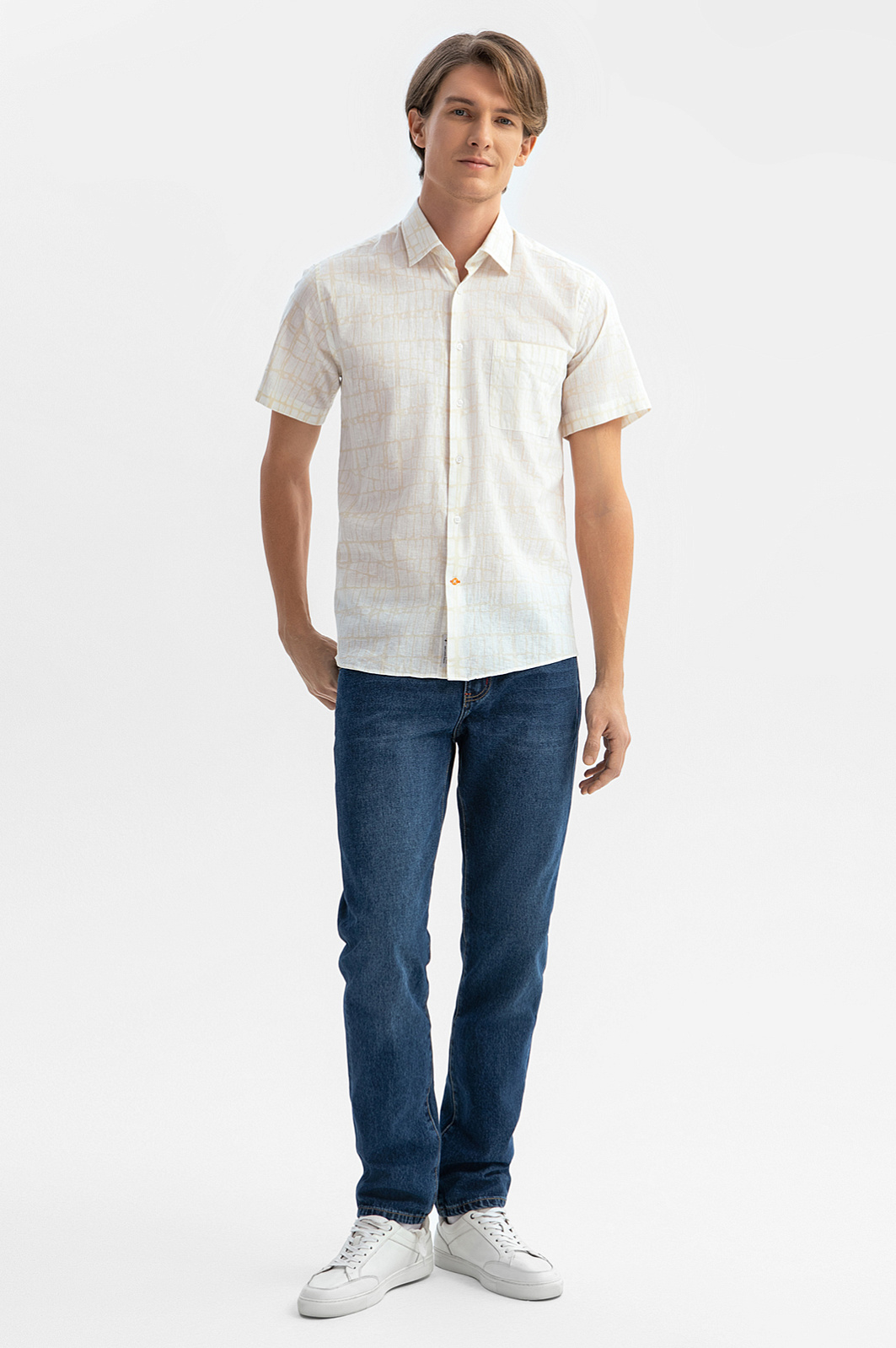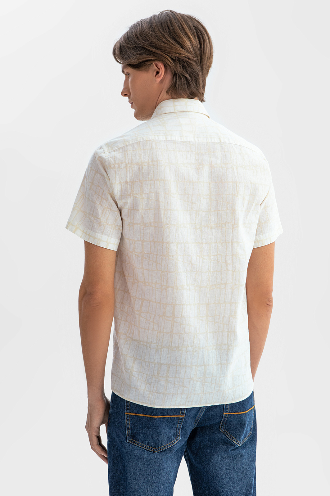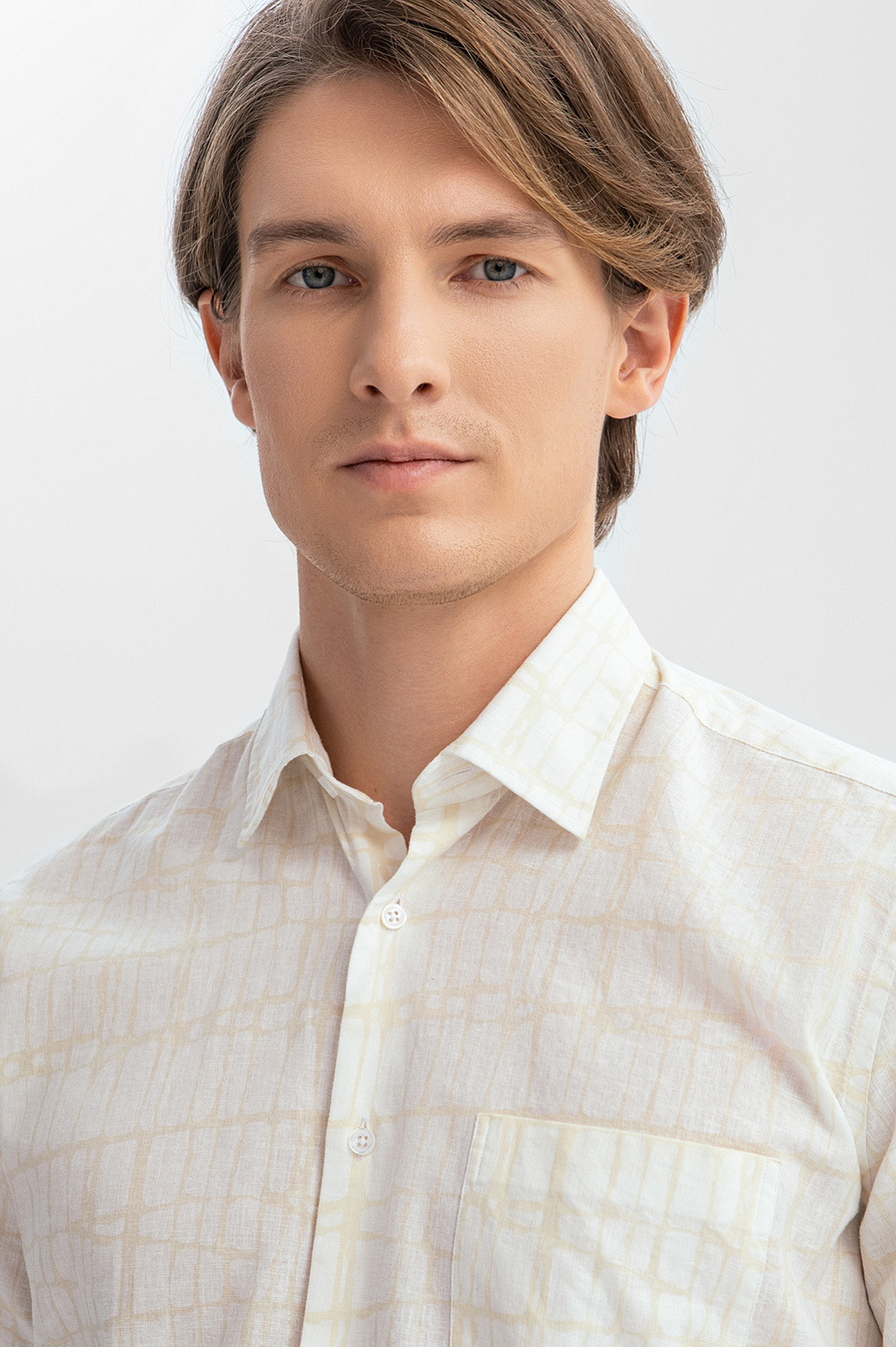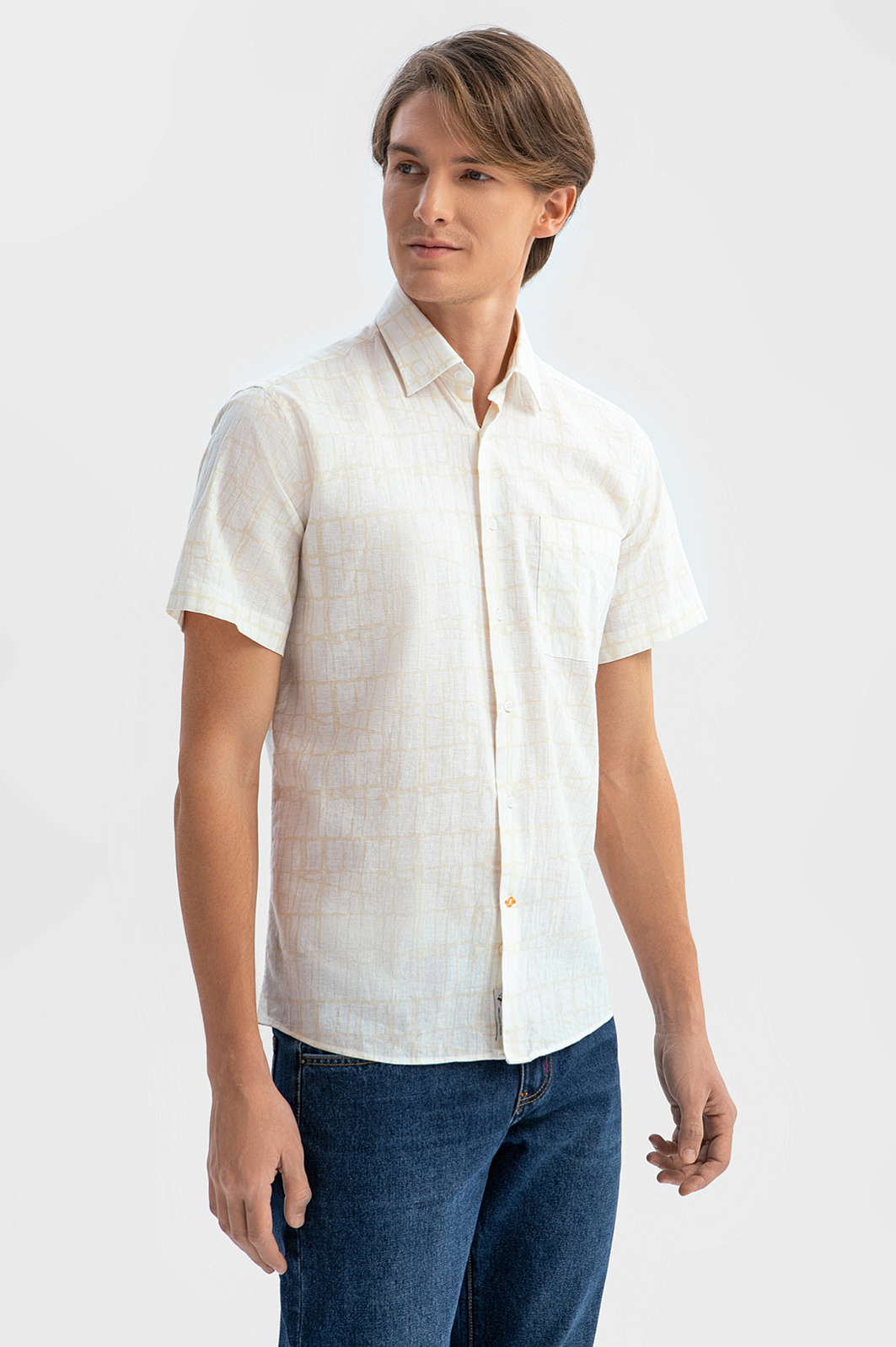 Для создания бежевой сорочки KANZLER выбран премиальный материал от Getzner (Австрия), одного из ведущих мировых производителей с более чем 200-летней историей. Лён в составе активно поглощает влагу, быстро сохнет и производит охлаждающий эффект, обеспечивая комфорт на протяжении всего дня. Гипоаллергенные волокна хлопка обеспечивают воздухопроницаемость и мягкость. Деликатный абстрактный узор добавляет образу оригинальности и шарма. Рекомендуем дополнить модель бежевыми брюками или прямыми джинсами. Параметры модели: рост 191, 97-77-99 Размер на модели: 40