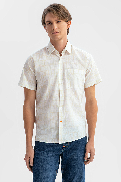 Сорочка с коротким рукавом из австрийской ткани Getzner, цвет бежевый, цена 3 990 руб., код 269338 - купить в Уфе в интернет-магазине KANZLER