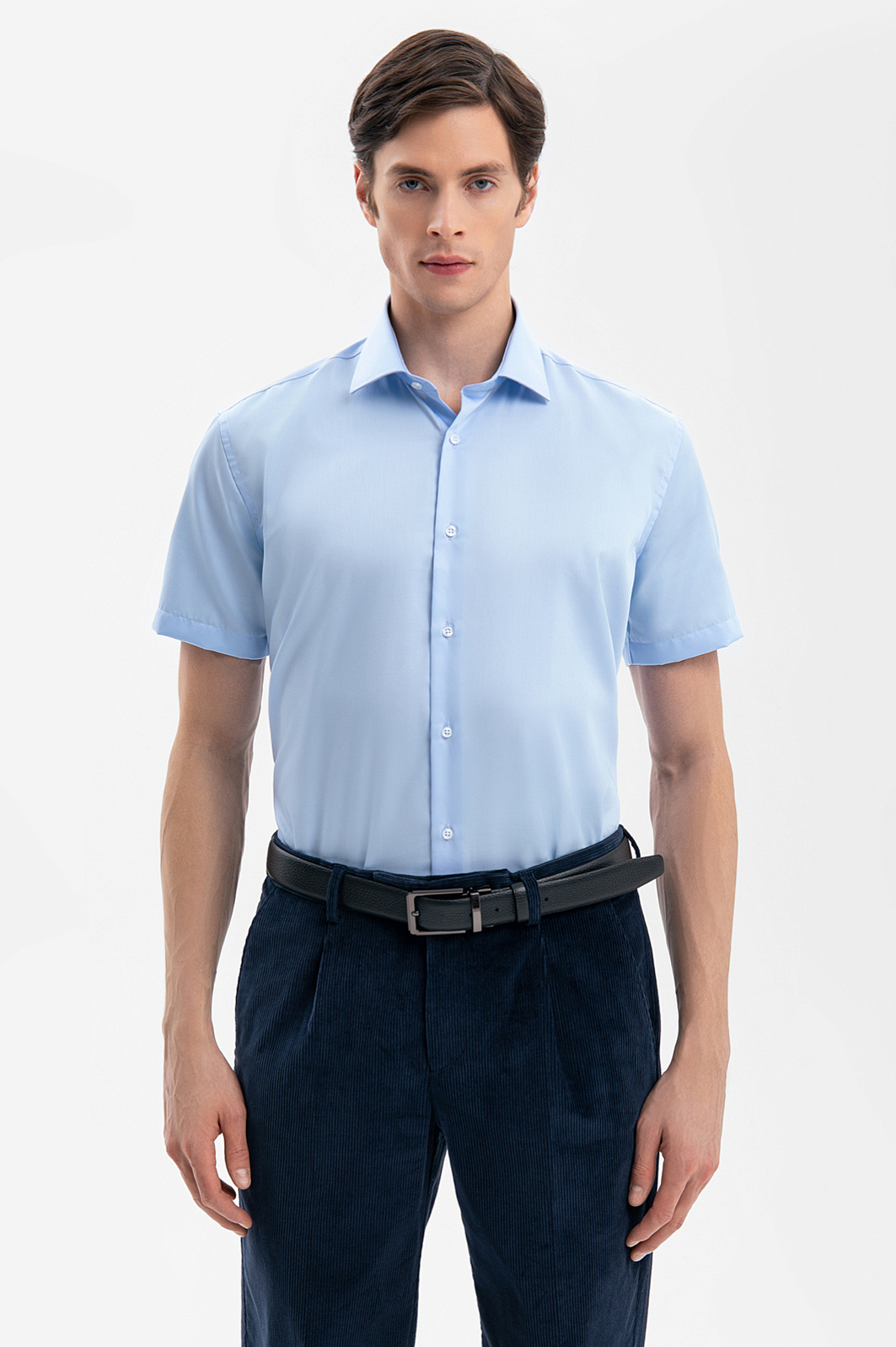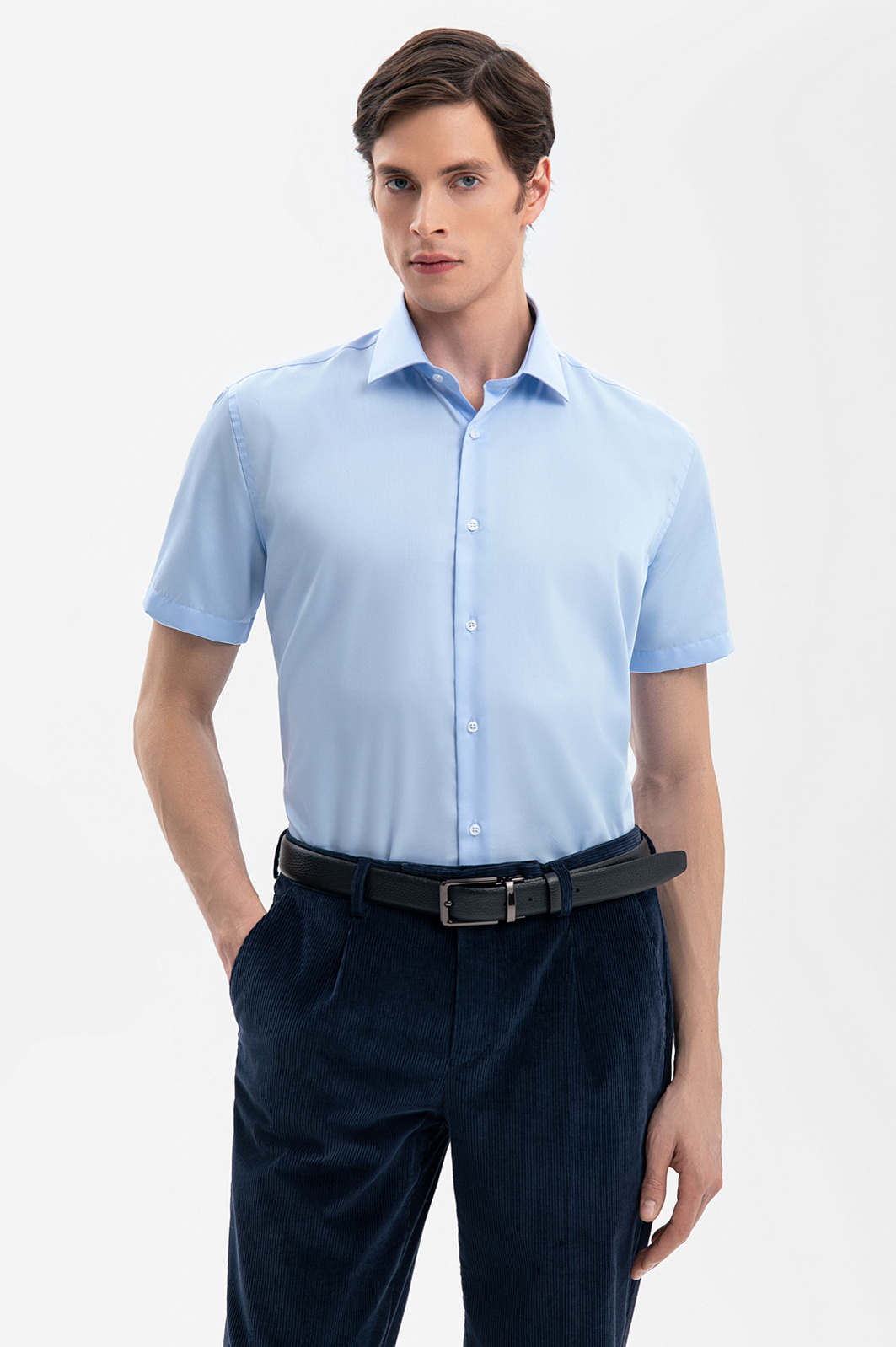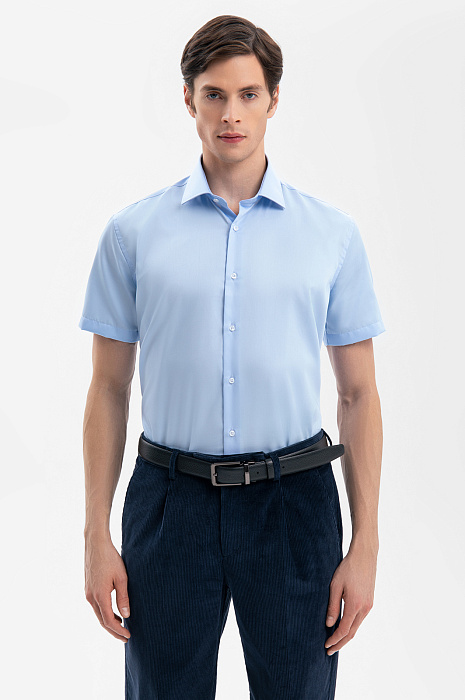 Сорочка с коротким рукавом из хлопка, устойчивая к сминанию, цвет голубой, цена 6 990 руб., код 269348 - купить в Уфе в интернет-магазине KANZLER