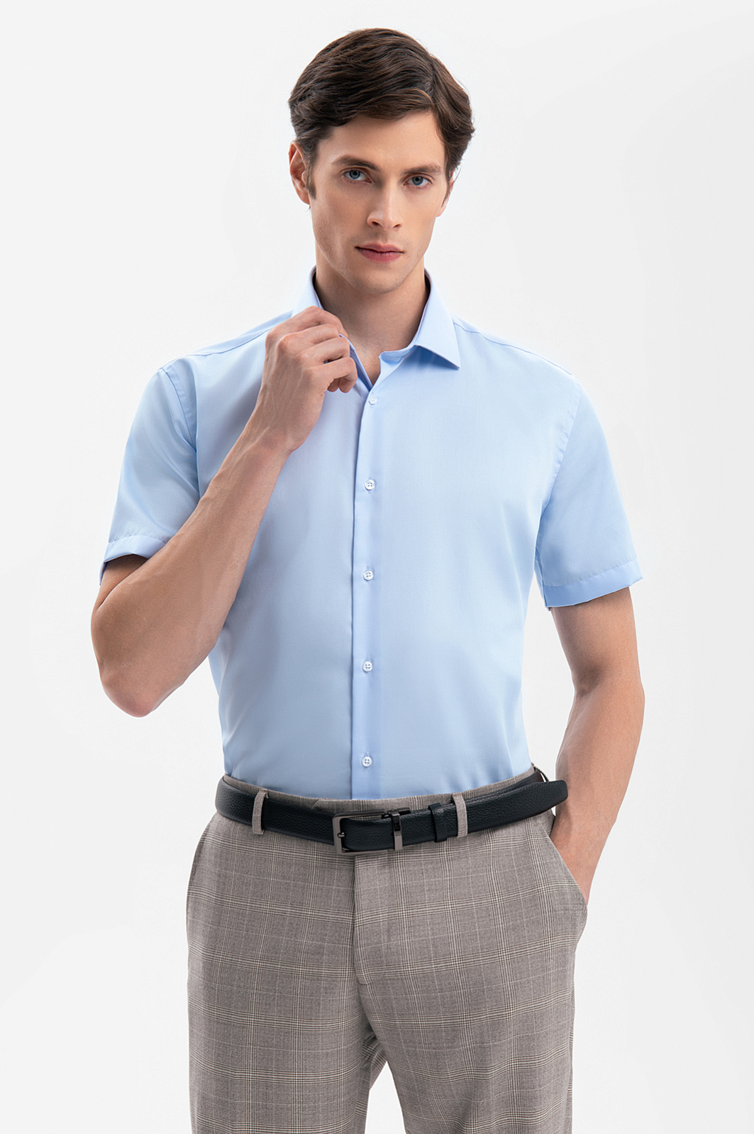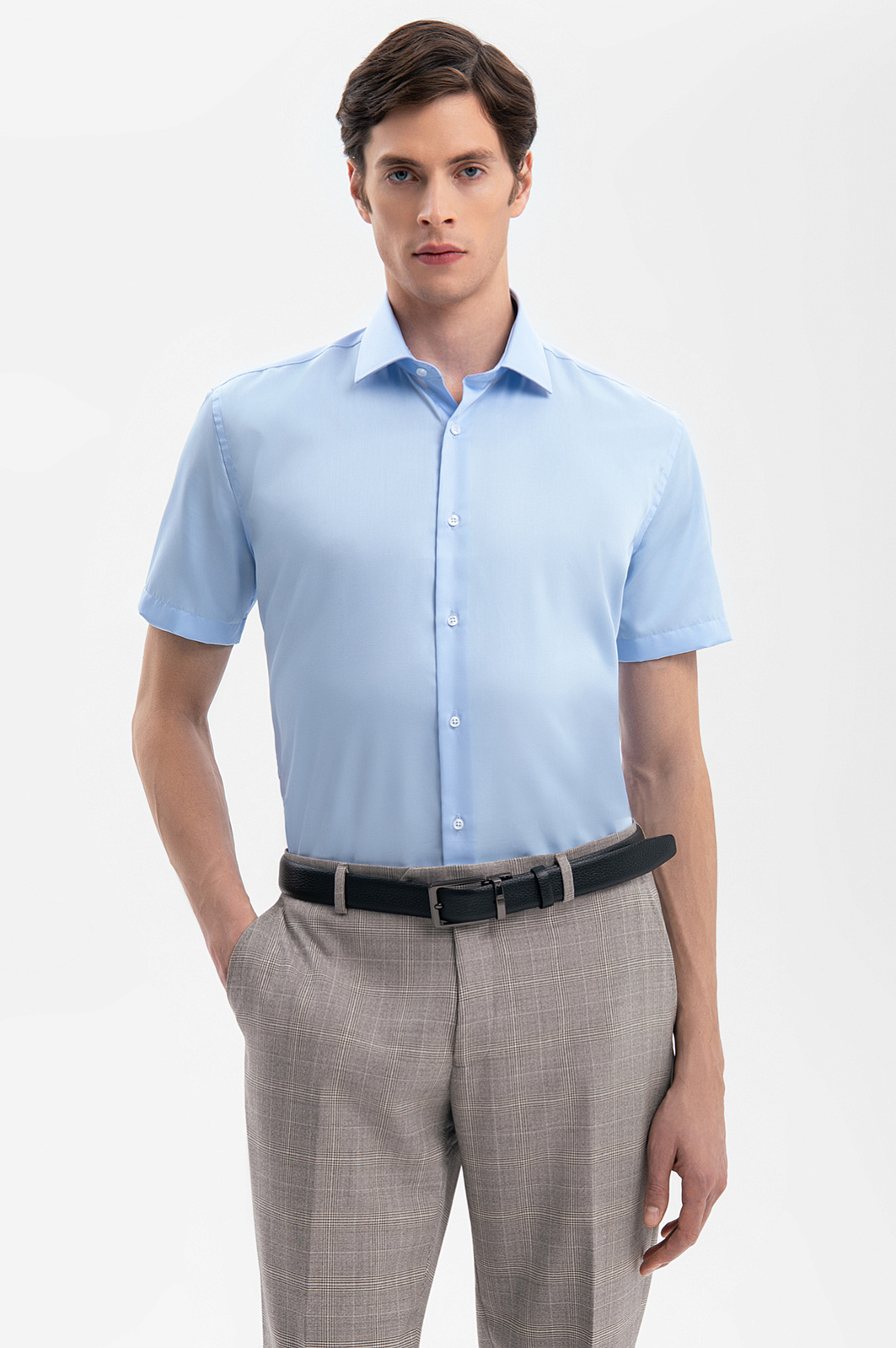 Сорочка с коротким рукавом из хлопка, устойчивая к сминанию, цвет голубой, цена 6 990 руб., код 269349 - купить в Уфе в интернет-магазине KANZLER