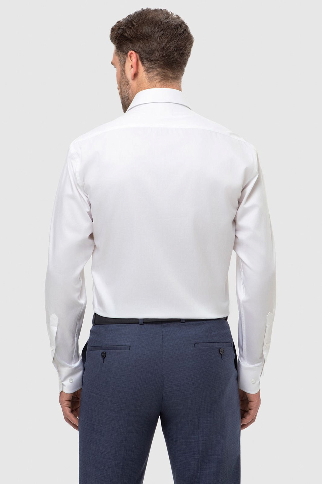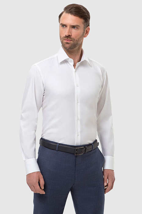 Кипенно-белая сорочка KANZLER приталенного кроя выглядит предельно лаконичной и элегантной. Она станет универсальным решением для вашего делового гардероба, предлагая идеальный баланс между стилем и комфортом. Изготовленная из тонких волокон премиального хлопка, сорочка обеспечивает отличную воздухопроницаемость и приятные тактильные ощущения, сохраняя при этом безупречный вид на протяжении всего дня. Тщательно выверенный крой гарантирует удобную посадку по фигуре, а классический рубашечный воротник, лаконичная фурнитура и манжеты на пуговицах делают сорочку подходящей для любых формальных мероприятий, офиса или важной встречи. Базовая белая рубашка легко комбинируется с костюмами, галстуками и различными аксессуарами и позволяет создавать разнообразные сочетания. Параметры модели: рост 189, 102-80-99 Размер на модели: 40