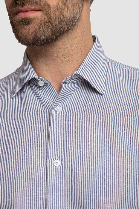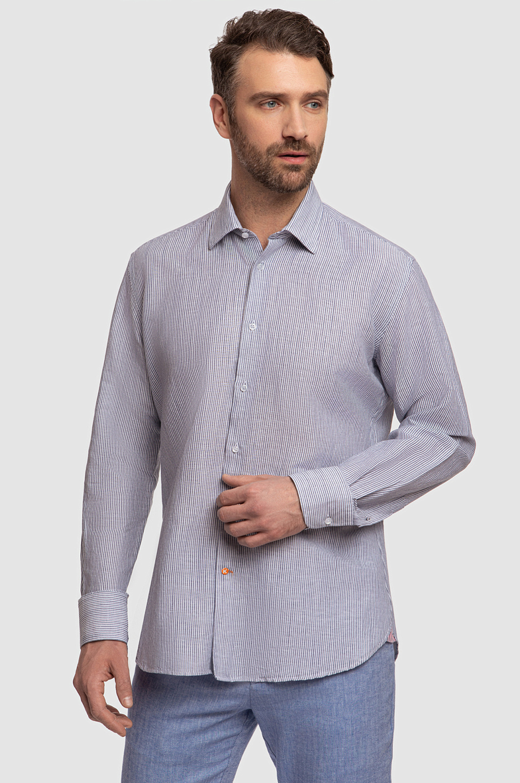 Воздухопроницаемая рубашка в полоску - это базовая вещь и прекрасный источник вдохновения для стильных и современных образов. Сочетайте рубашку с шортами или легкими брюками в светлых оттенках, подчеркивая ваш исключительный вкус. При пошиве рубашки свободного кроя дизайнеры сделали ставку на лаконичный дизайн и понятный рисунок, а также уделили особое внимание составу изделия. Воздушный, нежный лен дарит ощущение прохлады в летний знойный день, а мягкий и приятный телу хлопок лучше держит форму и меньше сминается. Рубашка KANZLER свободного кроя застегивается на пуговицы и обеспечивает комфорт в течение всего дня. Параметры модели: рост 189, 102-80-99 Размер на модели: 40