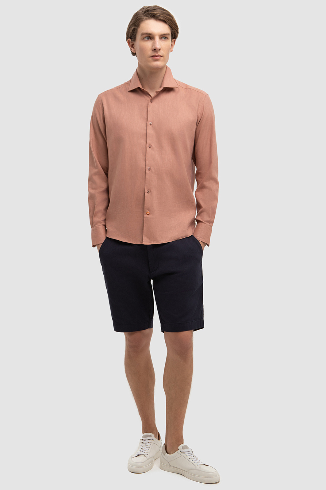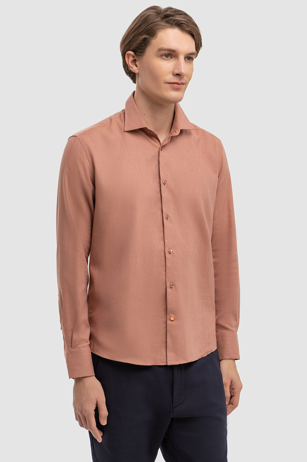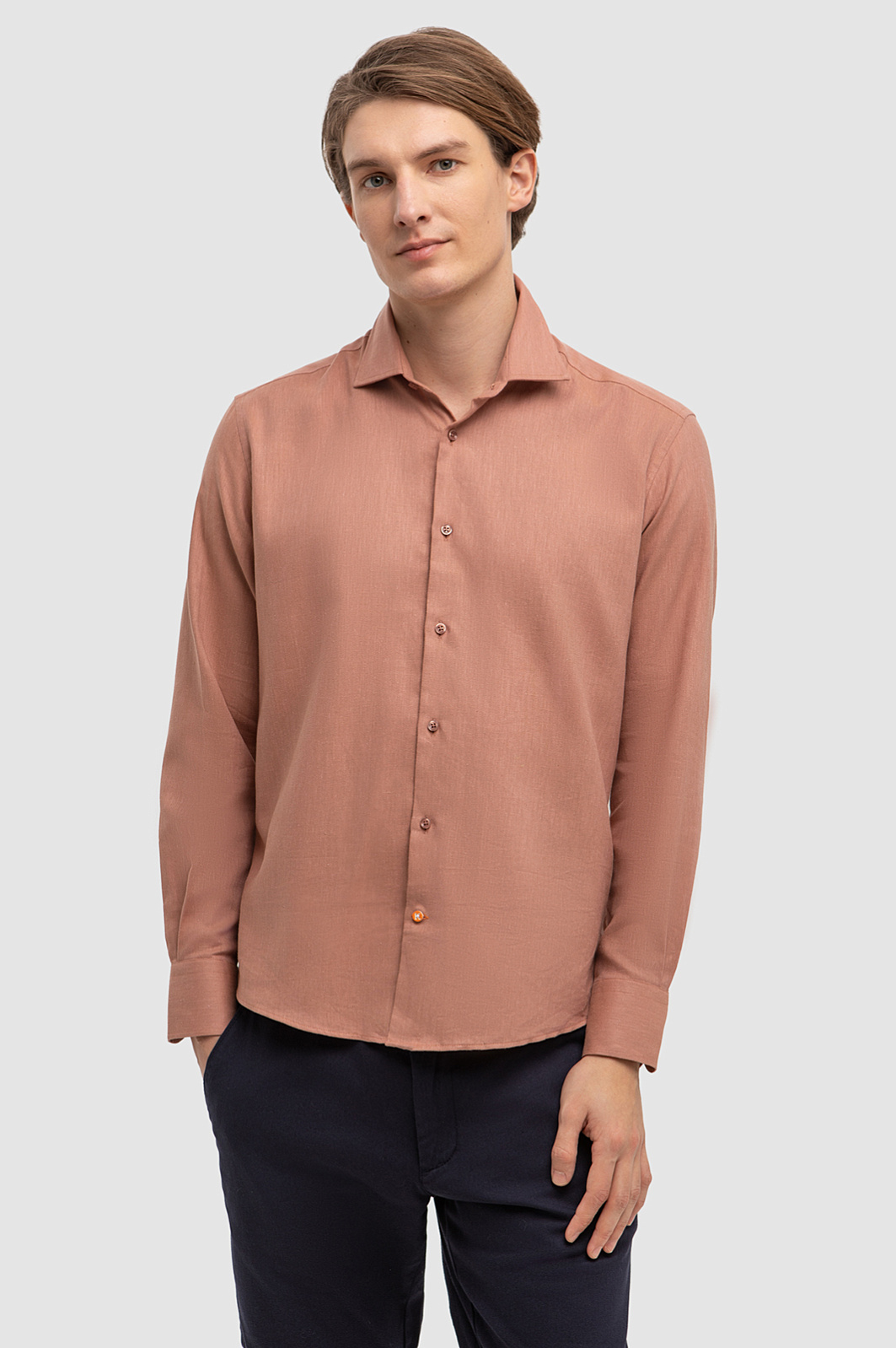 Терракотовая сорочка KANZLER с длинным рукавом поддерживает тренд на естественные, природные оттенки в гардеробе. Для ее создания дизайнеры выбрали итальянскую ткань Monti премиального качества. Комбинация хлопка и льна гарантирует отличную воздухопроницаемость, прочность и приятные тактильные ощущения - рубашка подойдет для мужчин с чувствительной кожей и обеспечит комфорт даже в самые жаркие дни. Свободный крой не сковывает движений, а теплый оттенок рубашки является настоящим источником оптимизма и жизнерадостного настроения для ее владельца и окружающих. Параметры модели: рост 191, 97-77-99 Размер на модели: 40