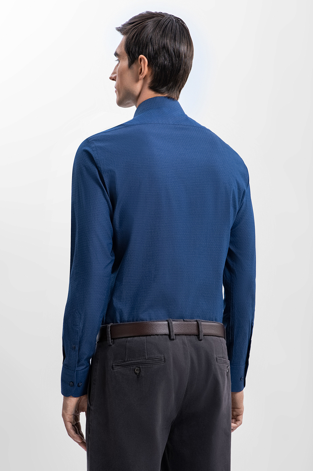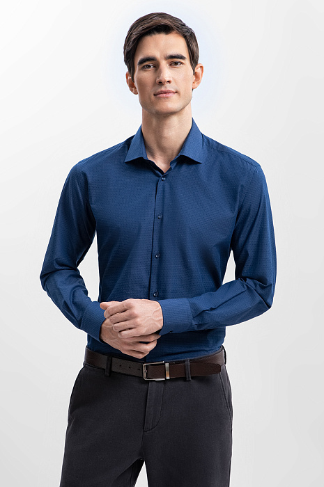 Темно-синяя сорочка KANZLER сшита из роскошной фактурной хлопковой ткани, созданной Carlo Bassetti — знаменитой текстильной итальянской мануфактурой с полуторавековой историей. Глубокий насыщенный темно-синий цвет, воплощенный в полуприлегающем крое, придает образам в стиле кежуал мужественность. Комфорт и свежесть на целый день обеспечивает мягкая легкая ткань, произведенная из гипоаллергенного воздухопроницаемого хлопка. Нежные легкие натуральные волокна создают тонкую воздушную прослойку и поддерживают приятную для тела температуру. Параметры модели: рост 192, 101-76-97 Размер на модели: 40