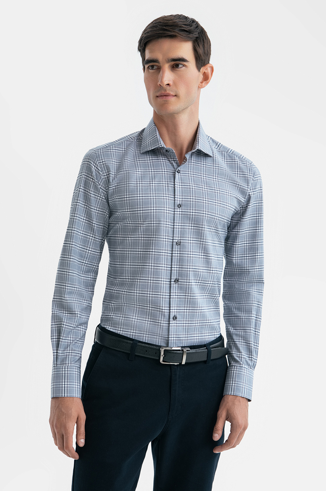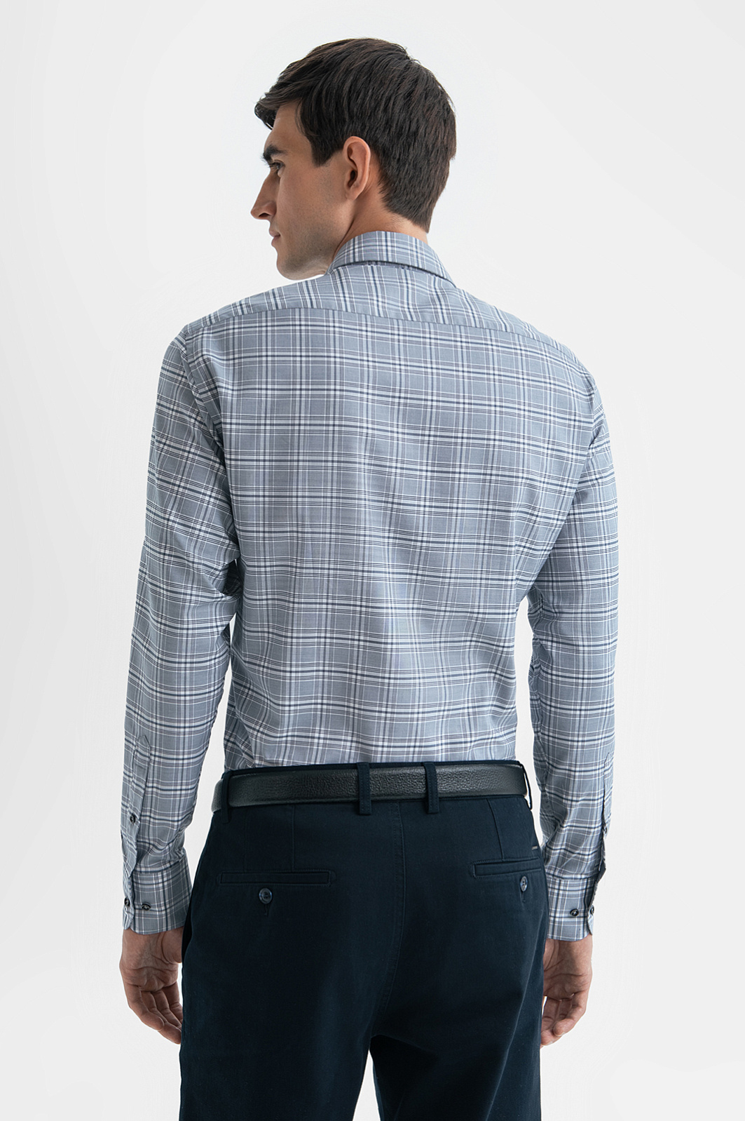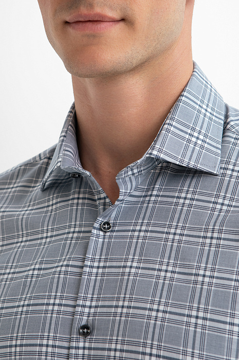 Сорочка из хлопка в клетку с технологией легкой очистки, цвет серый, цена 4 990 руб., код 268627 - купить в Уфе в интернет-магазине KANZLER