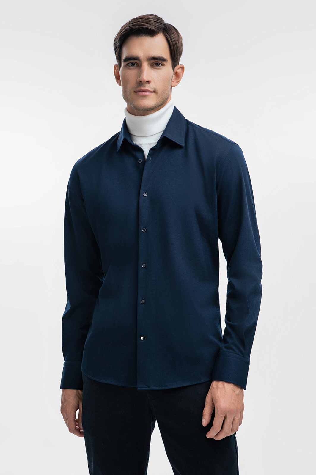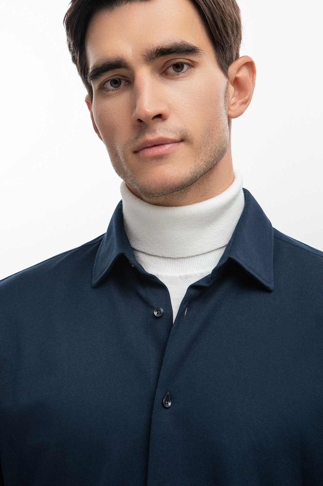 Трикотажная сорочка KANZLER синего оттенка из чистого хлопка подойдет для создания образов в городском и спортивном стилях. Прилегающий Приталенный крой подчеркивает лучшее в мужской фигуре. Гладкое трикотажное полотно мягко облегает тело. Нарушителем спокойствия выступает нижняя пуговица с фирменным инициалом, которая служит небольшим контрастным акцентом на темно-синем фоне. Дорогой натуральный материал из 100-процентного хлопка создает ощущение заботы и комфорта. Нежные натуральные волокна не раздражают чувствительную кожу, сохраняют свежесть и берегут естественное тепло тела. Параметры модели: рост 192, 101-76-97 Размер на модели: 40