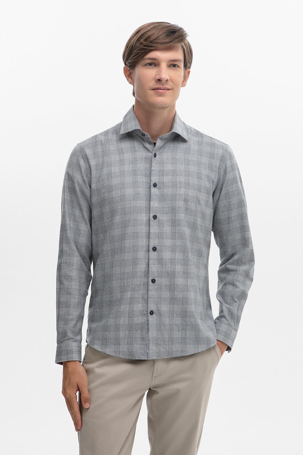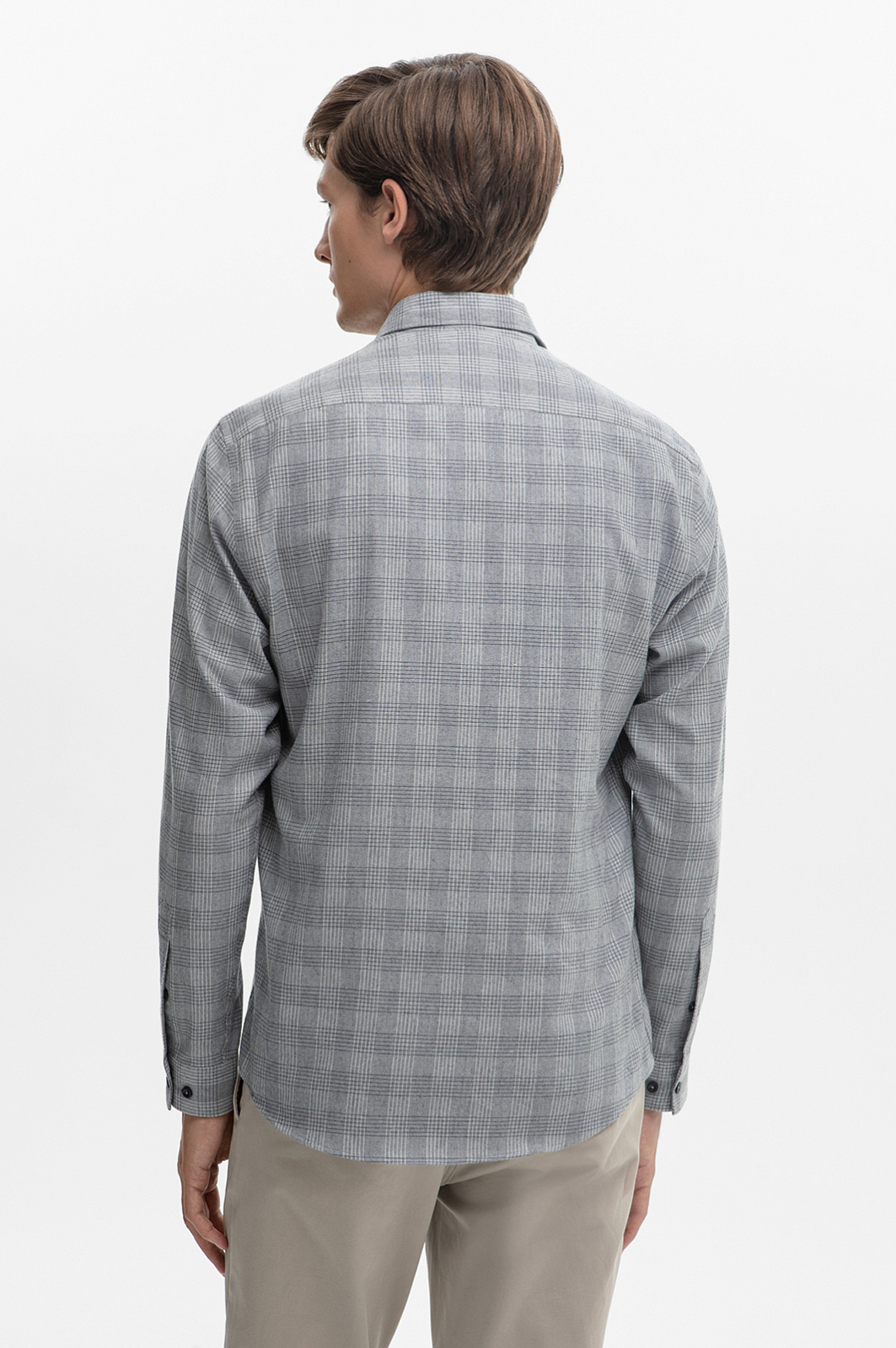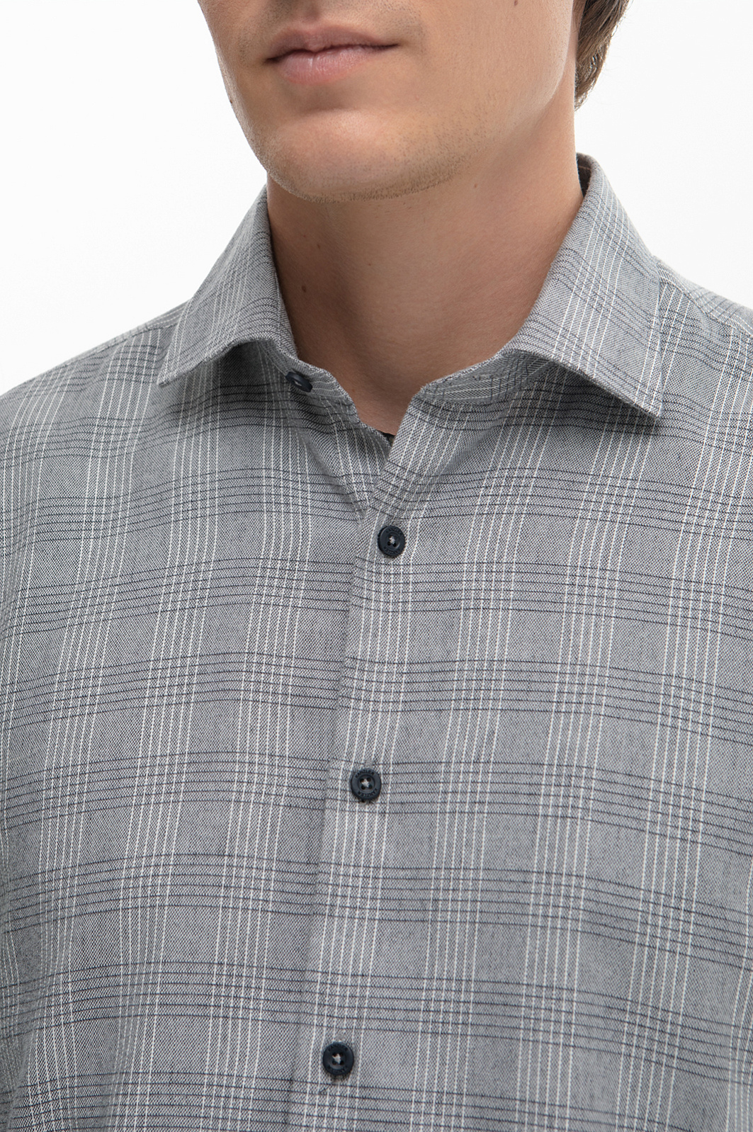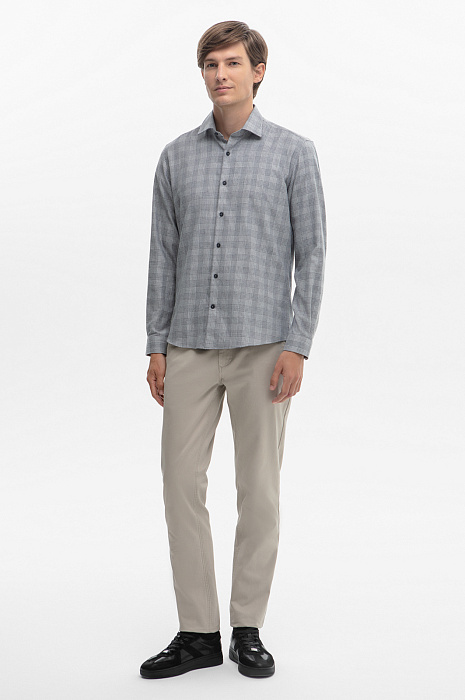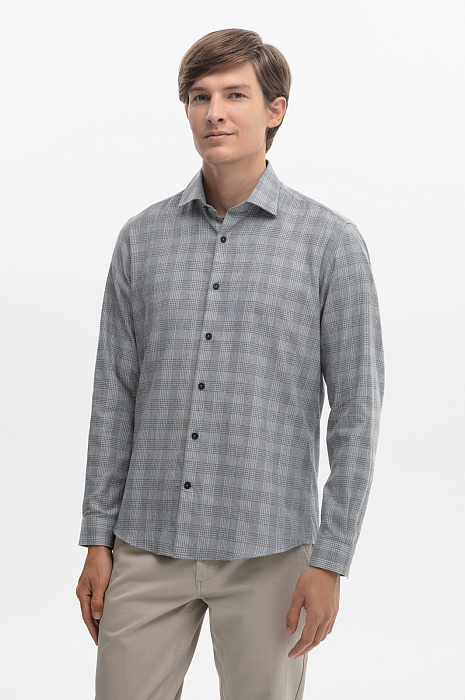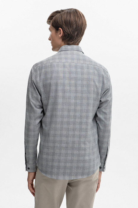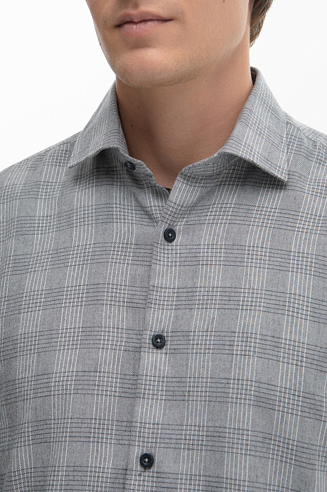Сорочка в клетку из австрийской хлопковой ткани Getzner, цвет серый, цена 4 990 руб., код 268643 - купить в Уфе в интернет-магазине KANZLER