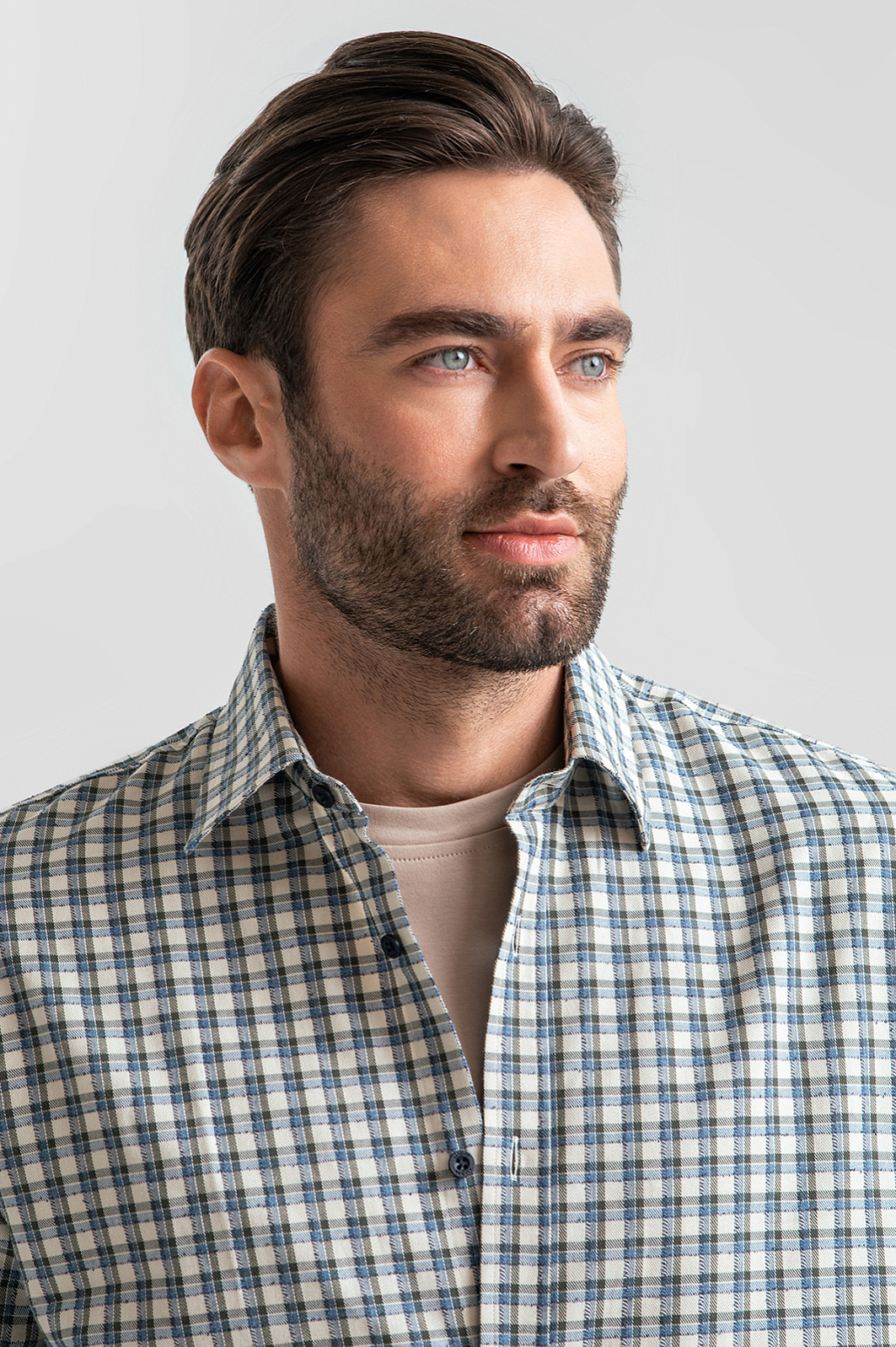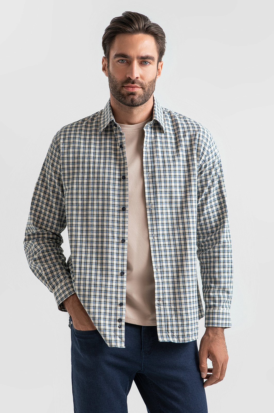Фланелевая рубашка – один из самых уютных и комфортных вариантов для прохладного времени года. Мягкая фланель, изготовленная из 95% хлопка с добавлением 5% полиэстера, приятна для тела и отличается прочностью и долговечностью. Клетка в сине-зелёных тонах транслирует сдержанную выразительность, спокойствие и уверенность. Свободный крой подходит мужчинам с разными типами фигуры и легко вписывается в любой кежуал аутфит, позволяя экспериментировать с многослойностью. Эта модель станет универсальным выбором на каждый день, чем бы он ни был наполнен: прогулкой, встречей с друзьями или вечеринкой. Параметры модели: рост 192, 108-83-102 Размер на модели: M