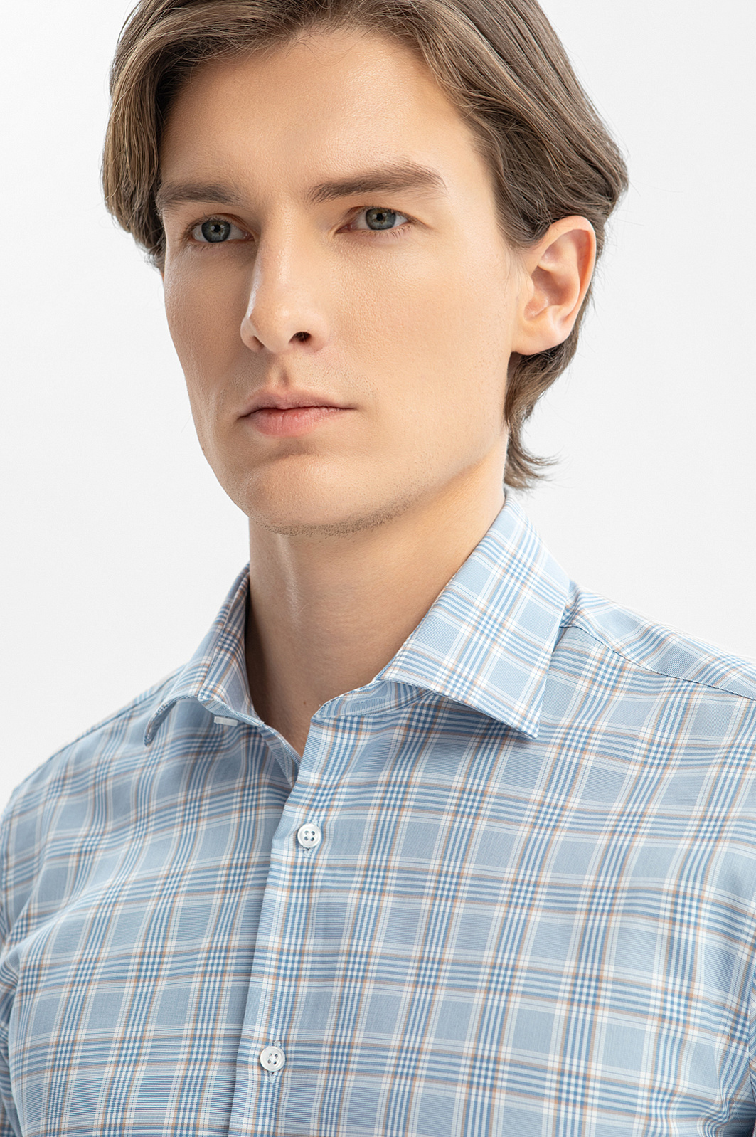 Сорочка из хлопка в клетку, цвет голубой, цена 5 990 руб., код 269310 - купить в Уфе в интернет-магазине KANZLER