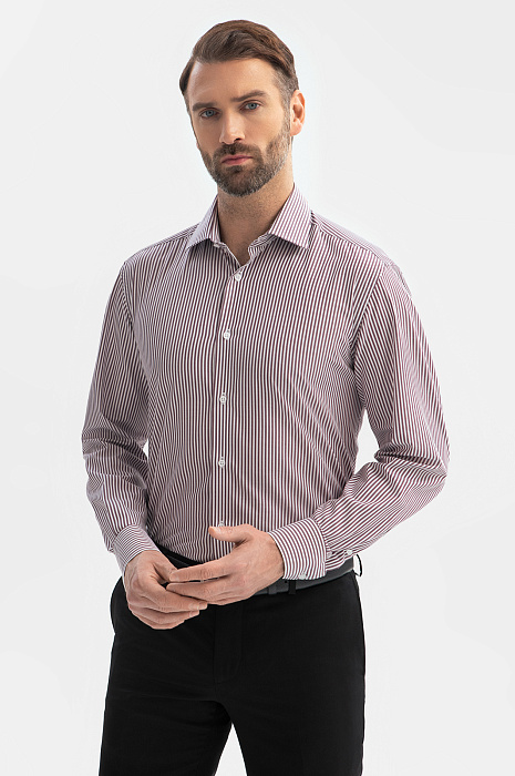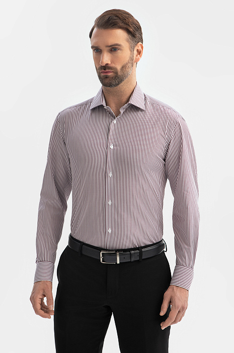 Сорочка из хлопка в полоску, цвет бордовый, цена 6 990 руб., код 269316 - купить в Уфе в интернет-магазине KANZLER