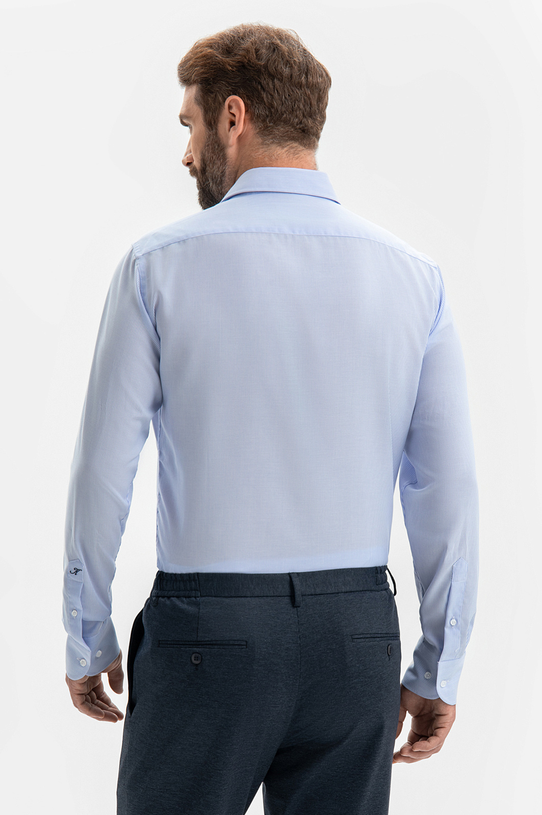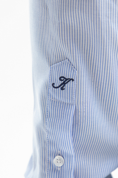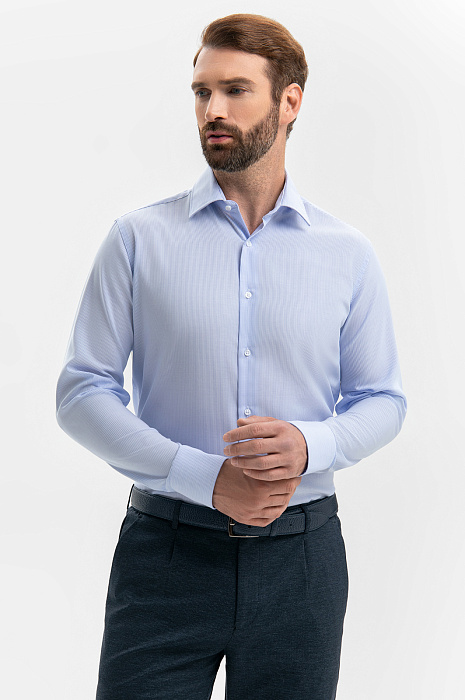 Сорочка KANZLER из чистого хлопка в голубую полоску — вневременная офисная классика. Она транслирует уверенность и принадлежность к деловому миру. Приталенный силуэт делает акцент на плечах и линии талии. Шлица на рукаве украшена синим фирменным инициалом. Модель безупречного качества сшита из 100-процентного хлопка — легкого гипоаллергенного дышащего материала, который сохраняет свежесть надолго и не раздражает кожу. Именно поэтому сорочка из хлопка — та вещь, которую носят с удовольствием. Параметры модели: рост 189, 102-80-99 Размер на модели: 40