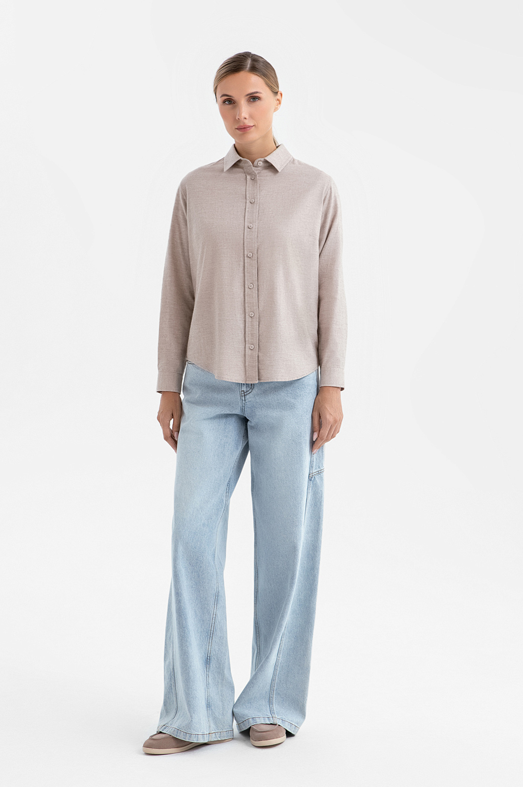 Нежно-бежевая сорочка KANZLER из чистого хлопка — воплощение естественной элегантности, удобства и непринуждённой повседневной роскоши. Вдохновлённая эстетикой простой рубашки, она сочетает в себе лаконичность и функциональность. Закруглённые края низа предоставляют выбор: носить сорочку как навыпуск для непринуждённого образа, так и заправленной в брюки или юбку для более строгого, аккуратного силуэта. Спокойный бежевый оттенок делает вещь универсальной и легко сочетаемой с другими элементами гардероба. Лёгкий воздухопроницаемый хлопок (100%) создаёт ощущение свежести и комфорта в течение всего дня.