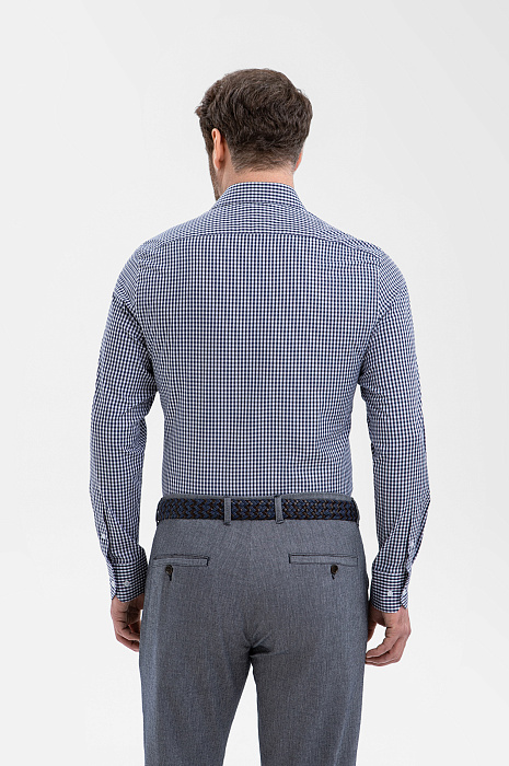 Синяя сорочка KANZLER прямого кроя из чистого хлопка — универсальная модель для мужчин, которые выбирают уверенный стиль и комфорт. Со строгими брюками и пиджаком она уместна в офисном контексте, а с джинсами или неформальными брюками — в местах отдыха. Клетка добавляет образу визуальный ритм, оставаясь сдержанной и уместной в рамках современной классики. Прямой крой не ограничивает свободу движений и подходит для любой комплекции. Материал из 100% хлопка мягко ложится по фигуре, приятен к телу и хорошо держит форму, оставаясь опрятным даже при активном ритме жизни. Гипоаллергенные натуральные волокна обеспечивают свежесть и комфорт в течение всего дня.