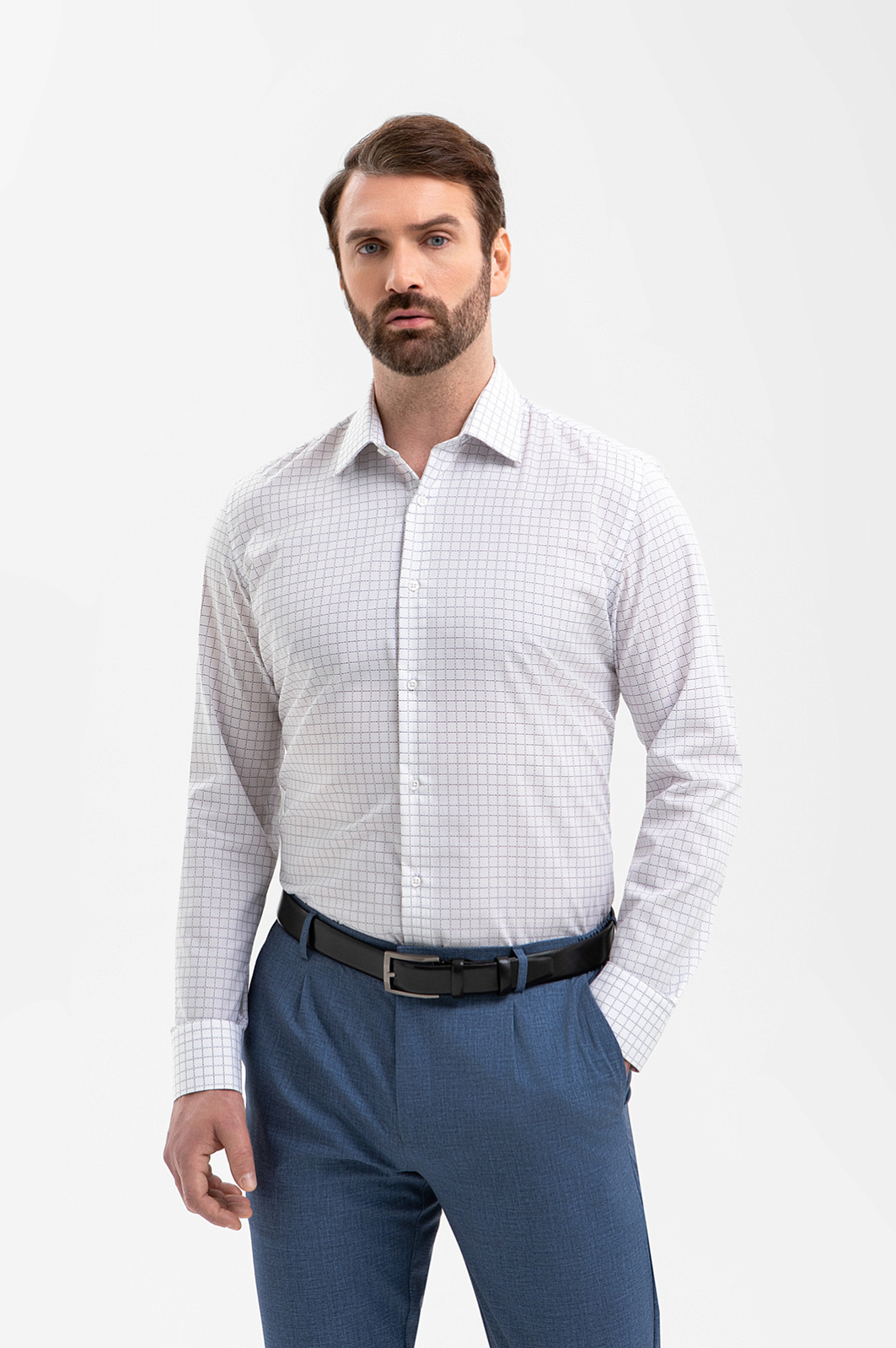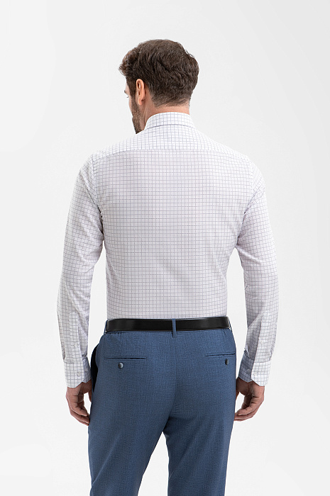 Белая сорочка KANZLER из чистого хлопка — современная интерпретация классики, где функциональность сочетается с выверенной эстетикой. Она гармонично вписывается как в деловой гардероб, так и в более расслабленные сочетания, и является идеальным выбором мужчины, для которого важны практичность, натуральные материалы и спокойная невычурная элегантность. Сдержанный клетчатый рисунок добавляет образу структурность. Слегка зауженный силуэт привлекательно преподносит фигуру, очерчивая её контуры. Рубашечная ткань с эффектом лёгкой утюжки упрощает уход и сохраняет аккуратный внешний вид без особых усилий. Мягкие гипоаллергенные волокна хлопка обеспечивают циркуляцию воздуха и приятную для тела температуру.