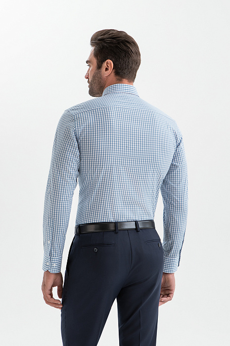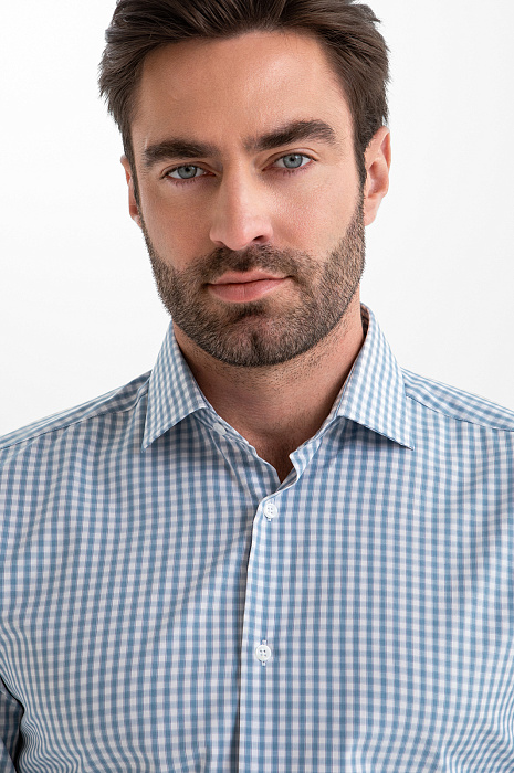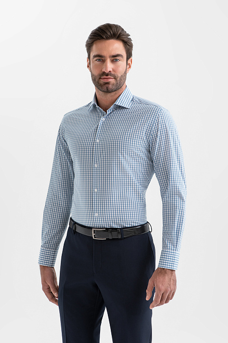 Сорочка KANZLER в голубую клетку из хлопка создаёт свежий и аккуратный образ — именно то, что нужно для работы, поездок, неформальных встреч и свиданий. Отсутствие декоративных деталей работает на элегантность и подчёркивает лаконичность модели. Универсальный свободный крой не ограничивает движений и подходит для фигуры любого типа. Высококачественная рубашечная ткань создана из гипоаллергенного хлопка (100%). Её лёгкая воздухопроницаемая структура позволяет коже дышать, поддерживая комфорт в течение всего дня.