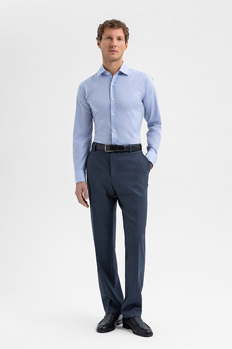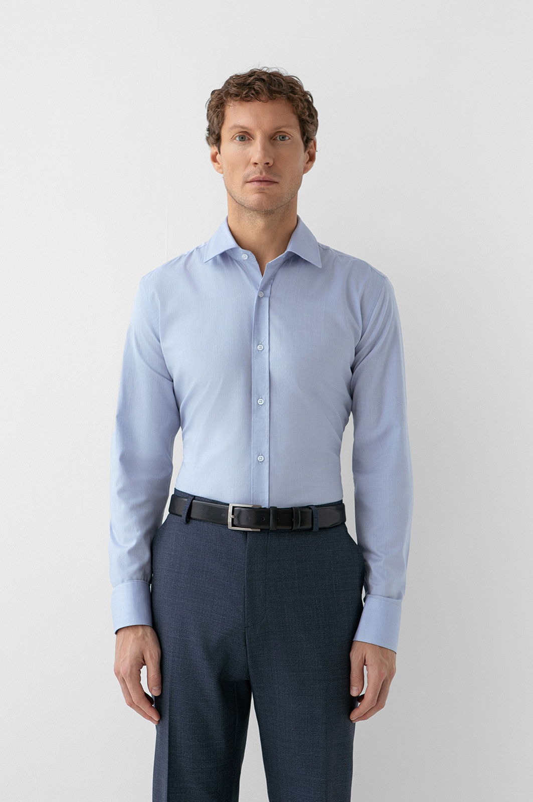Небесно-голубая сорочка KANZLER из хлопка и шёлка предназначена для поклонников той самой итальянской непринуждённости, когда безупречный стиль выглядит максимально естественным. Силуэт как будто сливается с фигурой, красиво очерчивая контуры тела, но не ограничивает свободу движений. Дорогое рубашечное полотно создано итальянской семейной мануфактурой Carlo Bassetti, которая использует в производстве высококачественное сырьё, благодаря чему нить получается ровной, без утолщений и узелков, а материал — плотным, но лёгким. В основе ткани — мягкий гипоаллергенный хлопок. Добавление шёлка создаёт ощущение нежного прикосновения, а нити вискозы укрепляют материал, делая его долговечным и износоустойчивым.