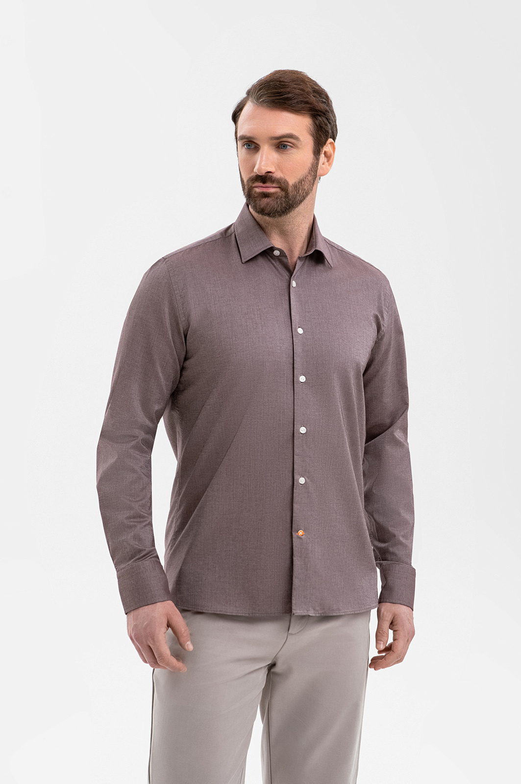 Сорочка KANZLER создаёт впечатление естественной, ненавязчивой утончённости благодаря безупречной посадке, дорогой итальянской ткани и глубокому, слегка приглушённому кофейному оттенку. Изящный силуэт красиво обрисовывает контуры тела. Текстильная мануфактура Carlo Bassetti, основанная в XIX веке, использует в производстве отборный длинноволокнистый хлопок, из которого получаются плотные, но лёгкие ткани. Воздухопроницаемые гипоаллергенные волокна хлопка поддерживают оптимальную для тела температуру и сохраняют ощущение свежести даже в насыщенном городском ритме.