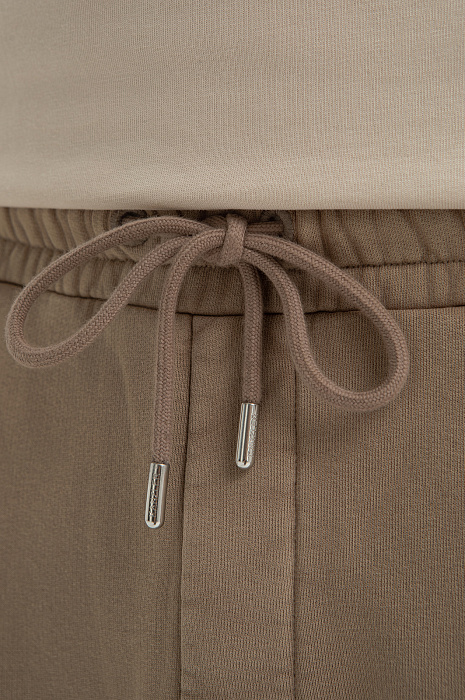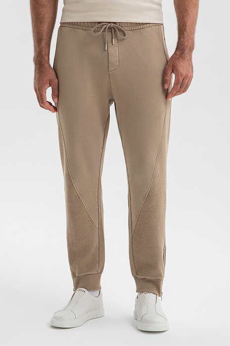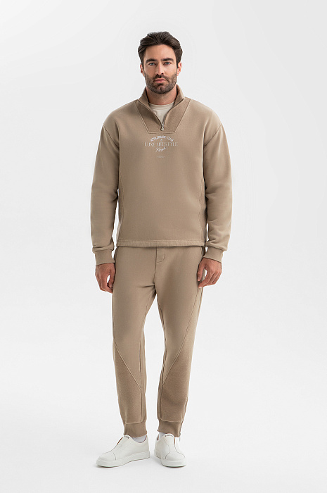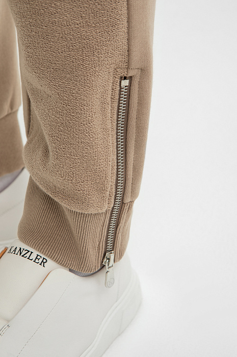 Бежевый спортивный костюм KANZLER в стиле athleisure — современный повседневный вариант, который по комфортности может поспорить с домашней одеждой. Костюм легко вписывается в любой сценарий дня — готов и к выходу на улицу, и к расслабленному семейному уикенду. Костюм состоит из толстовки с вышитой надписью на груди, удобными карманами и ворсистой вставкой с воротником, и джоггеров на кулиске с мягкими трикотажными резинками-манжетами. Качественный трикотаж из чистого натурального гипоаллергенного хлопка отличается мягкостью, способностью «дышать» и поддерживать комфортную для тела температуру.