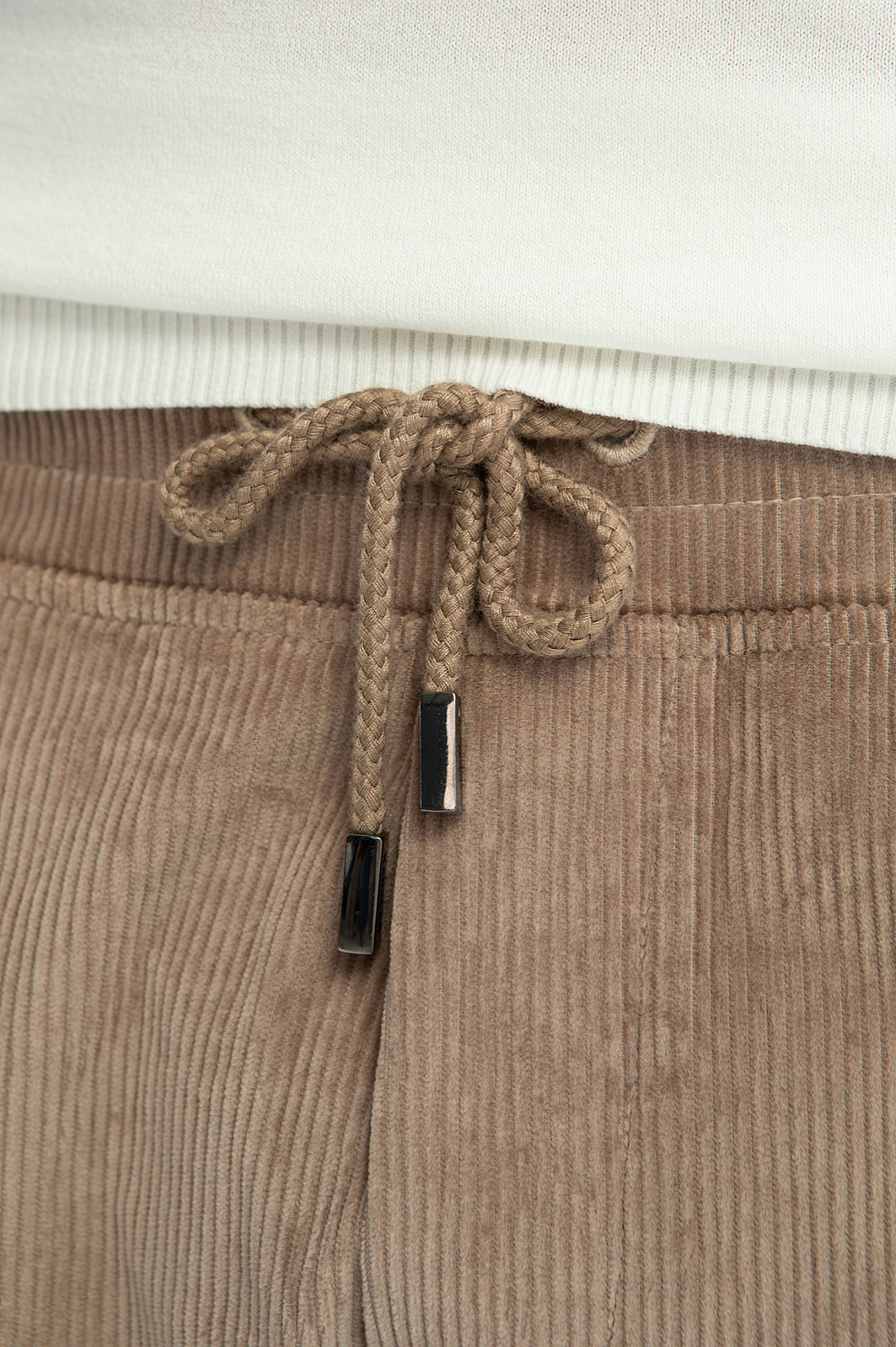 Роскошный вельветовый костюм KANZLER оттенка лесного ореха из лимитированной коллекции сочетает комфорт и эстетику и провозглашает отдых важной составляющей жизни. Костюм отличается современным расслабленным кроем. Удобная кулиска на шнурке помогает регулировать объем талии и фиксировать брюки. Светло-серые трикотажные резинки с полосками привносят спортивный шик и легкость. Превосходный премиальный вельвет для костюма создан мануфактурой Duca Visconte di Modrone (Италия). В составе ткани — гипоаллергенный воздухопроницаемый хлопок (99%). Его натуральные волокна отлично поддерживают комфортную для тела температуру. Небольшая добавка эластана (1%) помогает сохранять форму и укрепляет ткань.