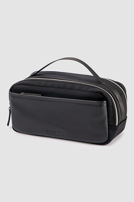 Черный несессер KANZLER из натуральной кожи и текстиля с тисненым логотипом — практичный и стильный аксессуар для хранения необходимых мелочей в поездках и повседневной жизни. Он верно служит своему владельцу, создавая уют и поддерживая порядок. Внутри — функциональное пространство с отделениями для гигиенических принадлежностей, косметики, бритвенных аксессуаров и зарядных устройств. Прочный износоустойчивый текстиль рассчитан на годы. Детали из мягкой гладкой кожи подчеркивают премиальный характер модели.