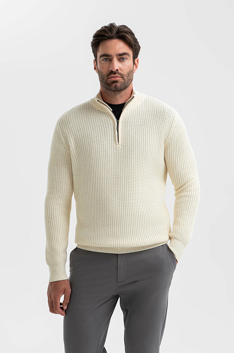 Свитер из хлопка, цвет молочный, цена 7 990 руб., код 270257 - купить в Уфе в интернет-магазине KANZLER