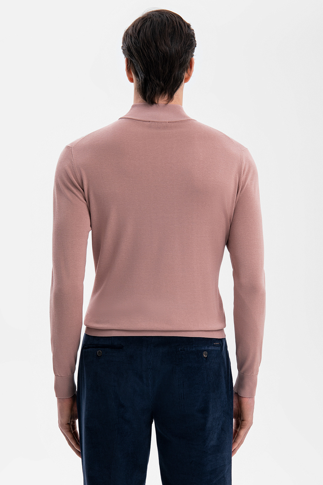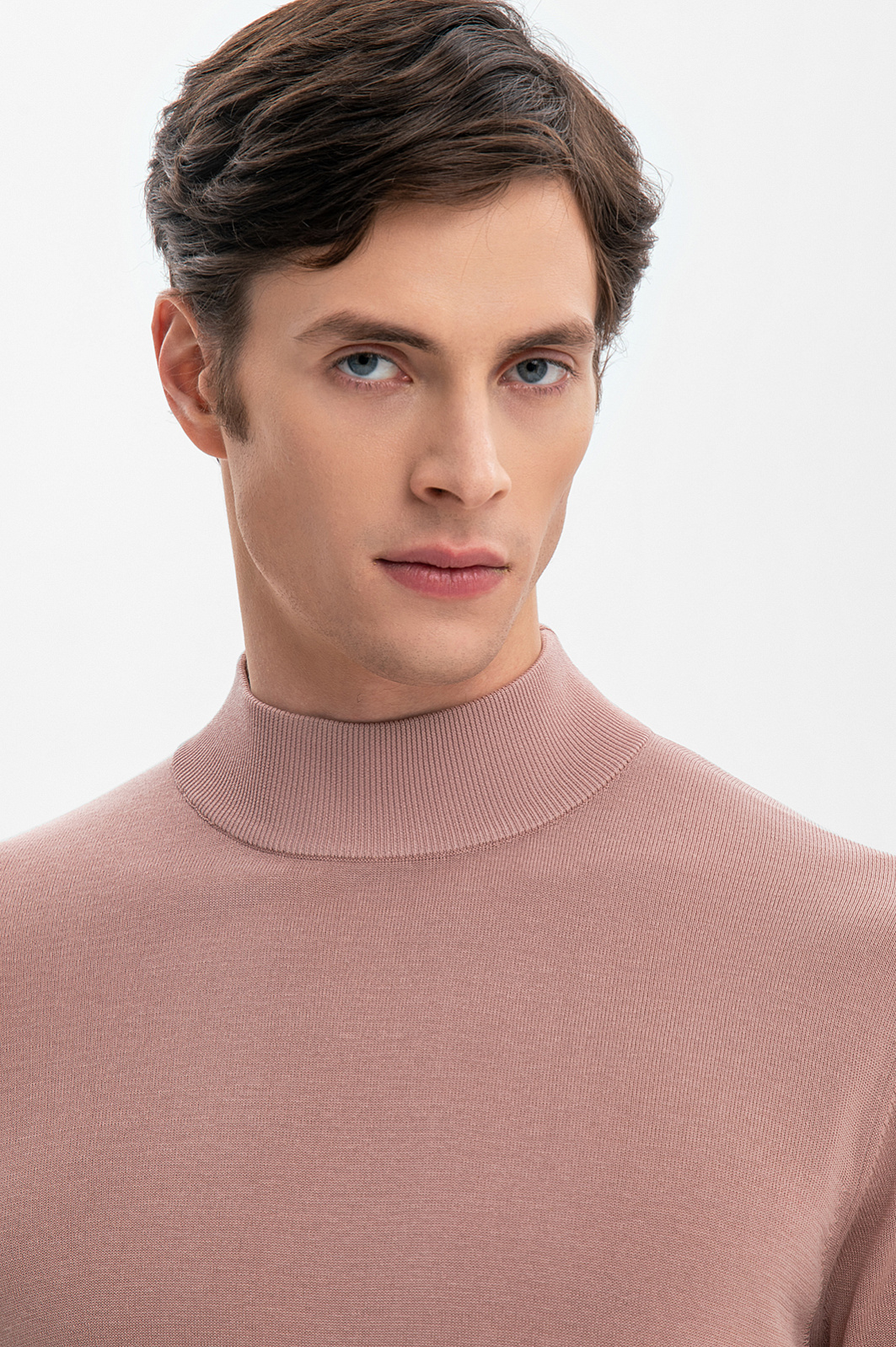 Водолазка в изысканном пудровом оттенке, напоминающем цвет заката, создана из 100% натурального шелка. Дышащий гипоаллергенный материал премиального качества обладает гладкой фактурой и легким сиянием. Минималистичный крой без лишних деталей и мягкая естественная палитра делают водолазку универсальным выбором для делового и кежуал гардероба. Воротник-стойка и мягкая резинка на манжетах и вдоль низа обеспечивают аккуратную посадку по фигуре и защищают от ветра. Сочетайте модель с брюками из тонкой шерсти и брогами или со светлыми льняными брюками и лоферами. Параметры модели: рост 189, 91-78-95 Размер на модели: М