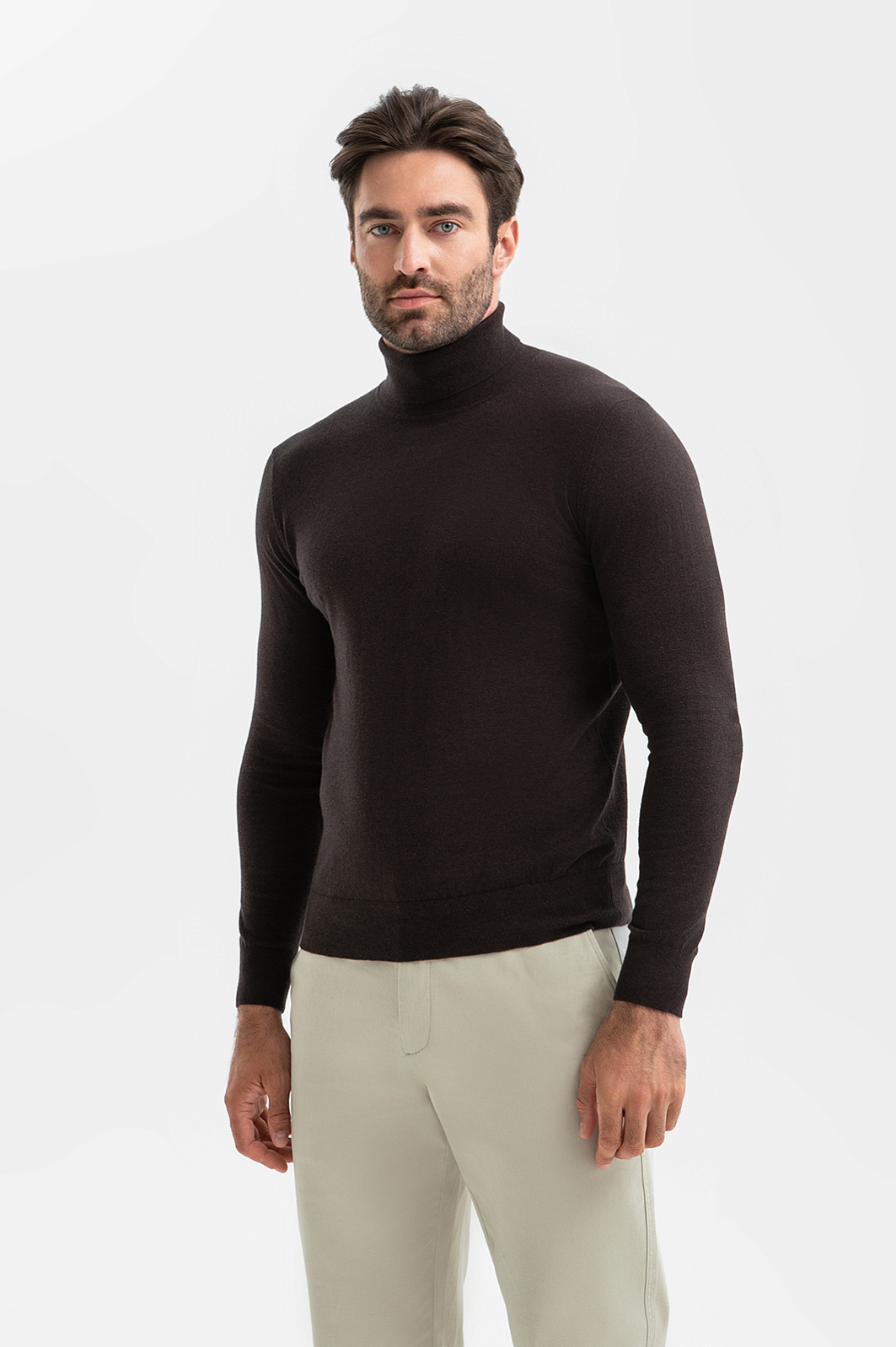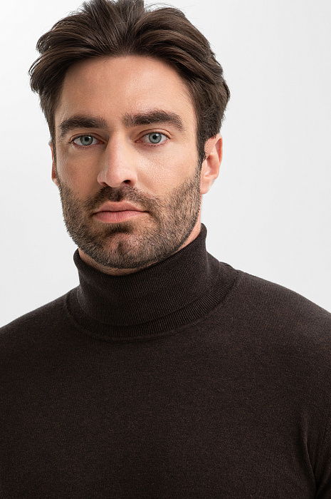 Водолазка из хлопка и кашемира, цвет коричневый, цена 8 990 руб., код 270037 - купить в Уфе в интернет-магазине KANZLER