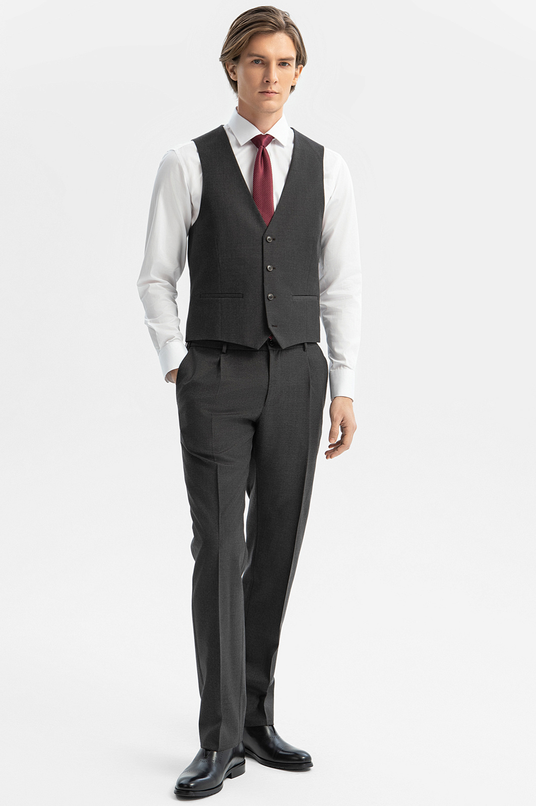 Серо-коричневый жилет KANZLER классического кроя из премиальной костюмной шерсти Супер 120S — неотъемлемая часть делового костюма-тройки, а в непринужденной неофициальной обстановке — стильный самостоятельный элемент одежды, который может заменить пиджак. Дорогая благородная ткань сохраняет естественное тепло тела. Она сделана из тончайшей овечьей шерсти, которая отличается долговечностью и прочностью. Ее натуральные упругие волокна обладают суперсилой — способностью восстанавливать форму, — благодаря которой жилет не мнется и всегда выглядит безупречно. Параметры модели: рост 191, 97-77-99 Размер на модели: 50