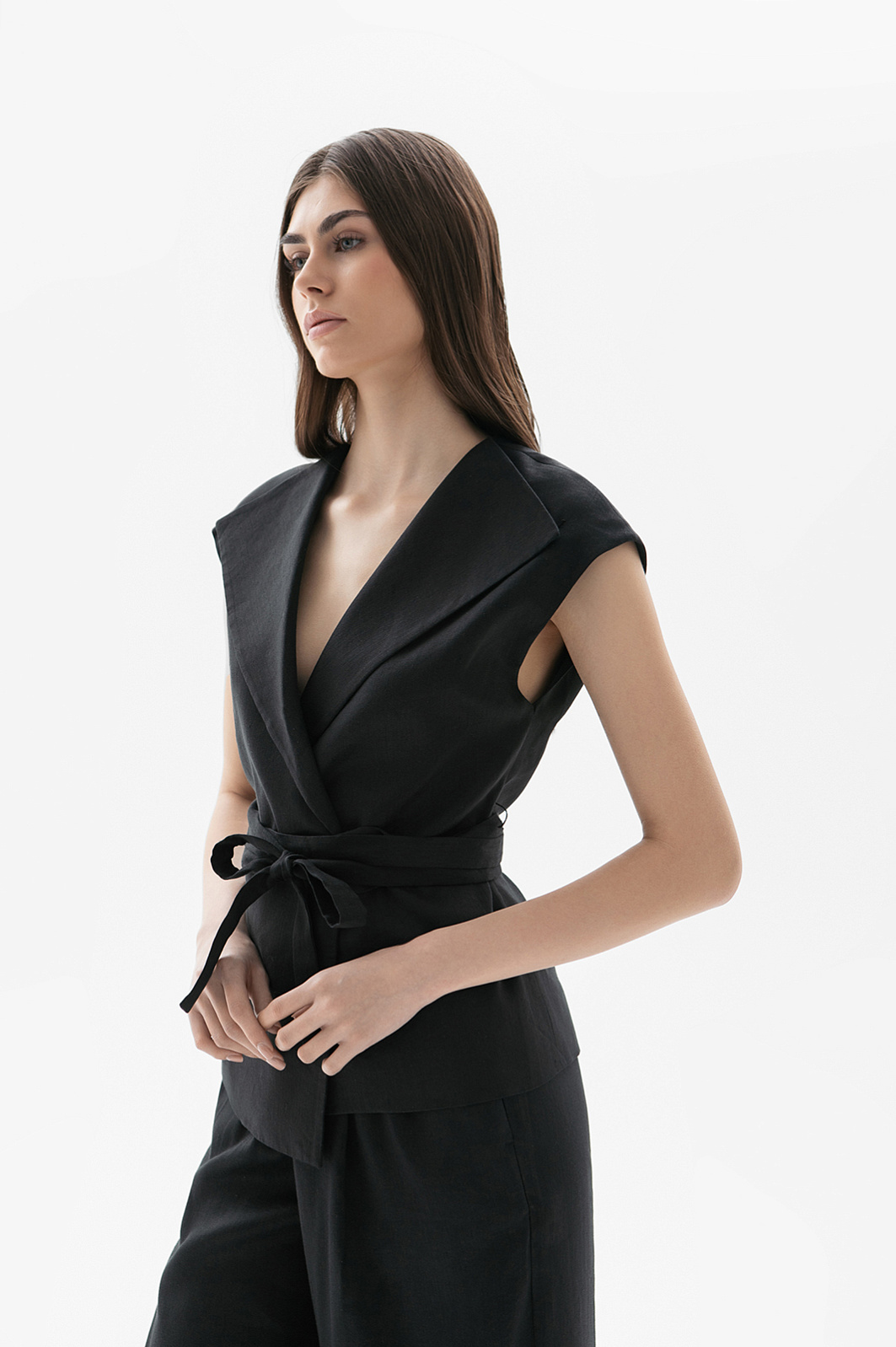 Жилет изо льна и вискозы, цвет черный, цена 10 990 руб. - купить в интернет-магазине KANZLER